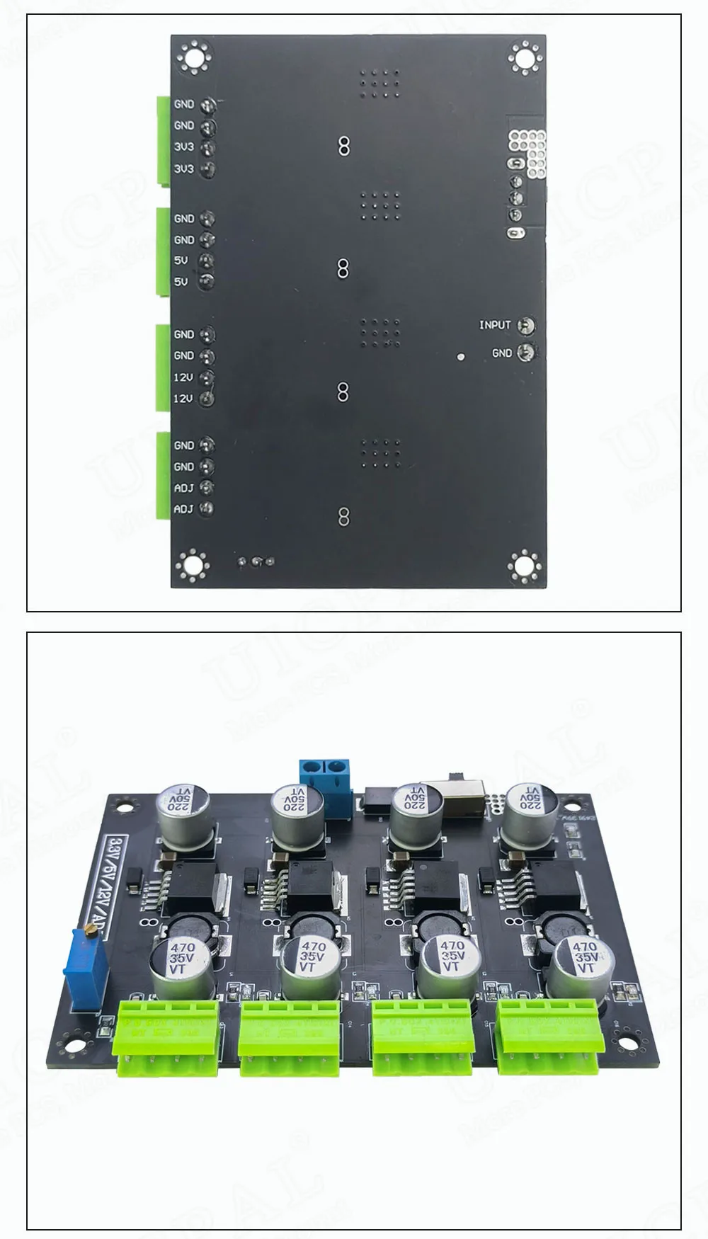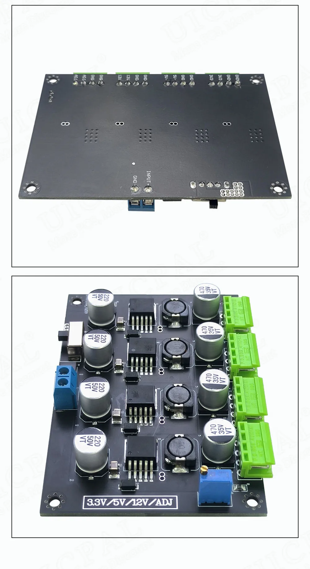 Pensé en comprar una placa, cambiar algunos resistores y tener voltajes arbitrarios en un Broad 4. ¡SÍ, pero no es tan simple! 3.3/5/12 se resuelven con el LM2596S, que ya tiene el FB dentro. Pero bueno, para eso los voltajes son bastante precisos. Pero también está indicado en la descripción... (no leí) Pero si el pequeño interruptor deslizante en la entrada es una buena opción, eso aún se verá.