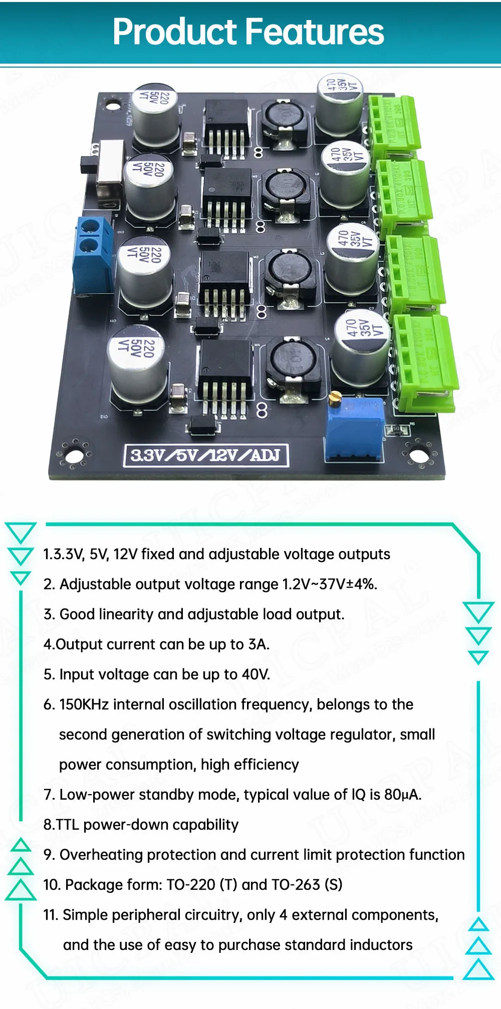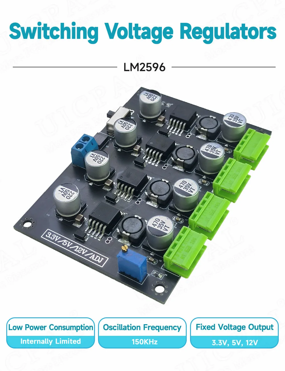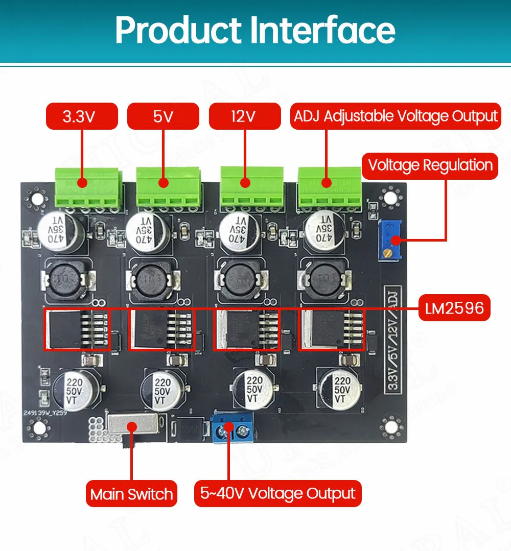 LM-2596 Módulo de fuentes de alimentación conmutada de múltiples circuitos 3,3 V 5 V 12 V ADJ Modules de potencia de salida de voltaje ajustable LM2596