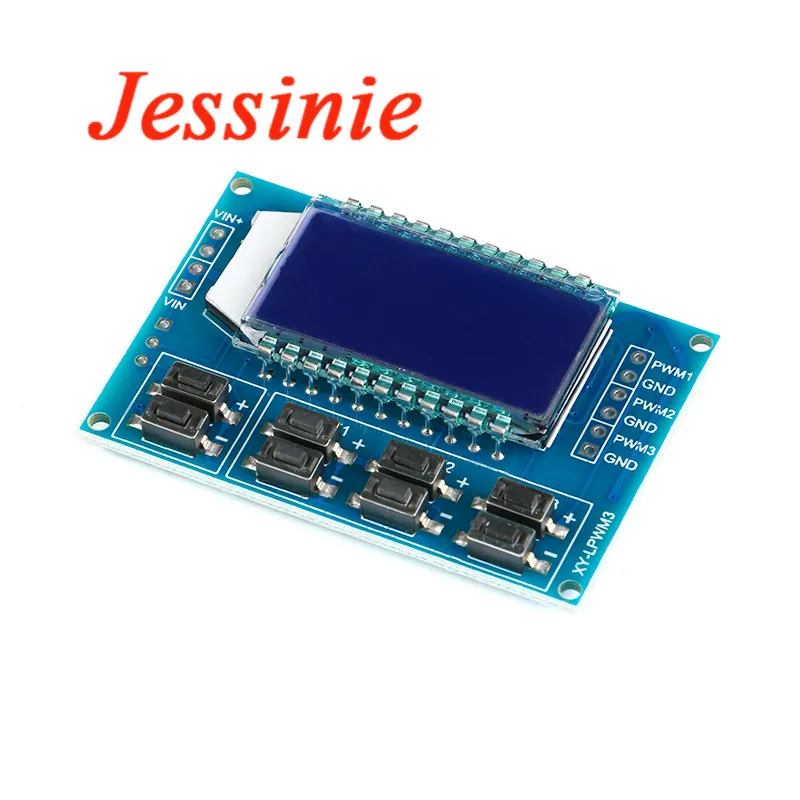 Módulo destacado1. Salida PWM de tres vías, frecuencia ajustable, salida de frecuencia de tres vías, el ciclo de trabajo se puede ajustar de forma independiente, adecuado para la mayoría de las ocasiones;2. Frecuencia LCD y ciclo de trabajo de la pantalla de cristal líquido, muy clara, muy fácil de ajustar3. Amplio rango de frecuencia y alta precisión;4. Comunicación serieDescripción del móduloSalida PWM de 3 vías, amplio rango de frecuencia, el ciclo de trabajo se puede ajustar de forma independiente en tiempo real;La frecuencia se divide en cuatro rangos, cambiando automáticamente:1.XXX (sin punto decimal): la unidad mínima Hz es 1, el rango de valores es 1Hz ~ 999Hz;2.X.XX (el punto decimal está en cien lugares) es 0,01 Khz, el rango de valores es 1,00 Khz ~ 9,99 Khz;3.X X.X (punto decimal en diez): La unidad mínima es 0,1 Khz; el rango de valores es 10,0 KHz ~ 99,9 KHz4.X.X.X (punto decimal en diez y cientos): La unidad mínima es 1Khz; el rango de valores es 1KHz ~ 150KHzPor ejemplo. Visualización de frecuencia: 100 representa el pulso de 100Hz de salida PWM;1,01 representa el pulso de salida PWM 1,01 K;54,1 indica el pulso de salida PWM 54,1 KHz;1.2.4 indica pulso de salida PWM de 124KHz;Los valores del ciclo de trabajo oscilan entre 0 y 100%, donde 100% se expresa en A %.Todos los parámetros de configuración se guardan después del apagado.