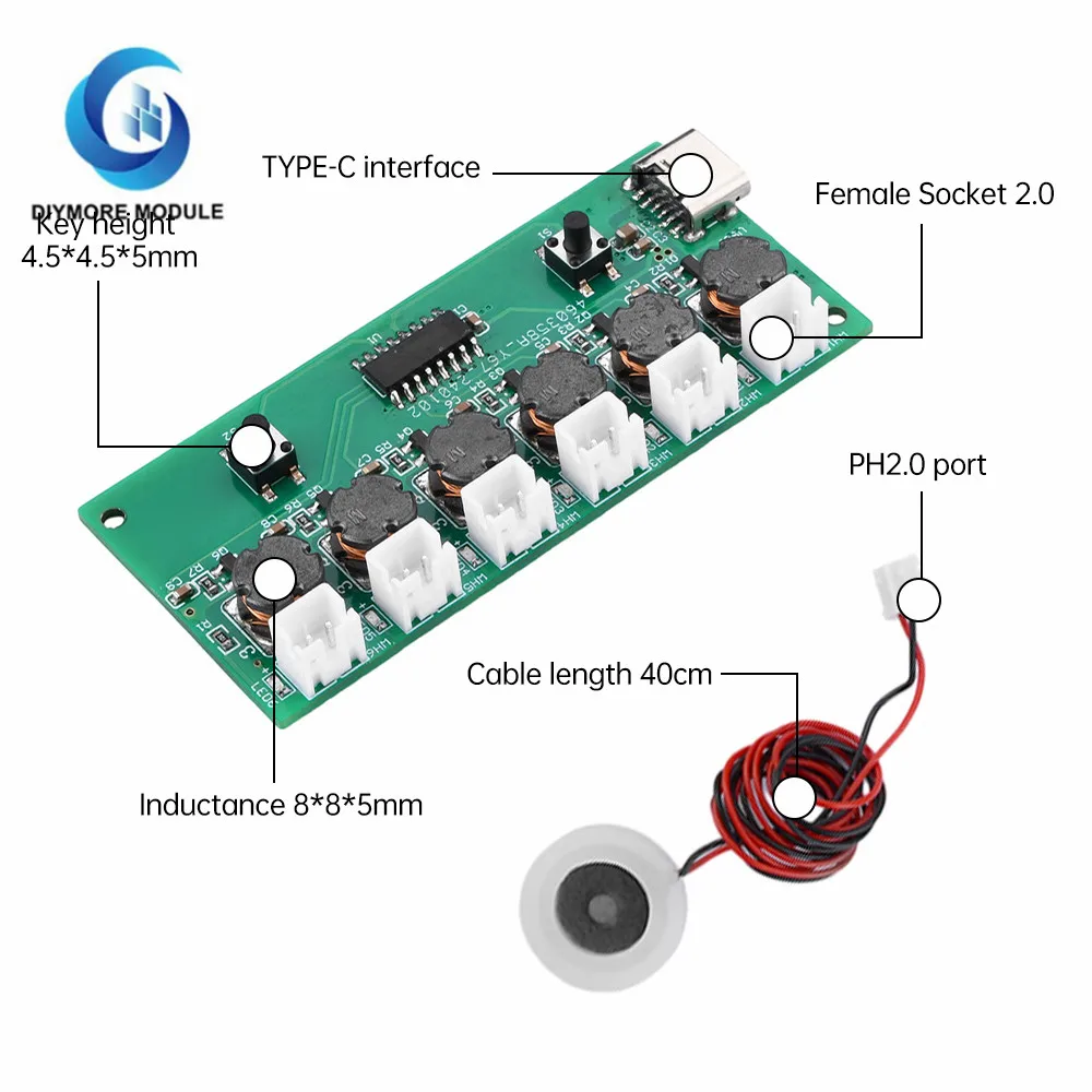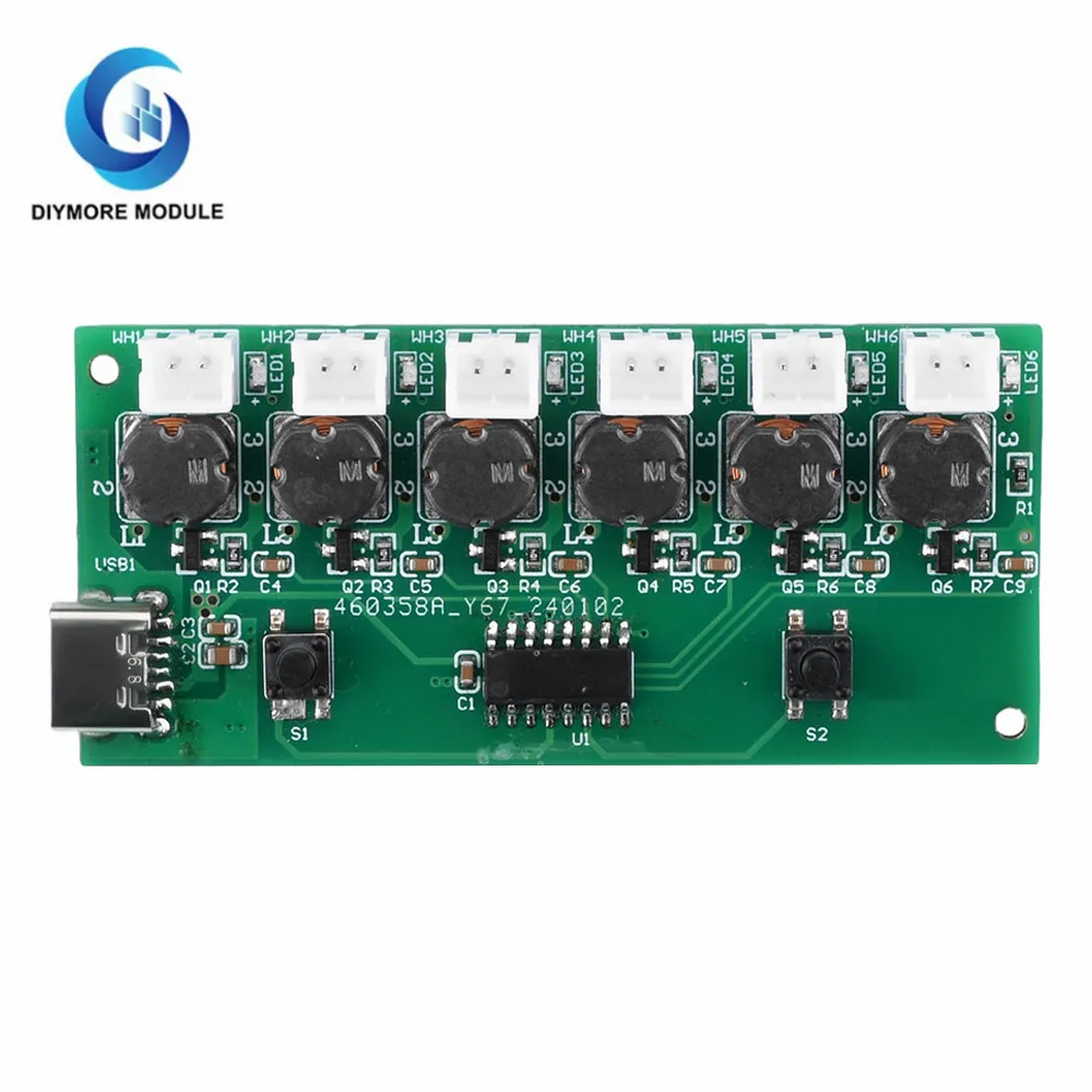 Comprar Módulo de humidificador de seis pulverizadores DC5V, placa de control de atomización, atomizador ultrasónico DIY, interfaz de TYPE-C
