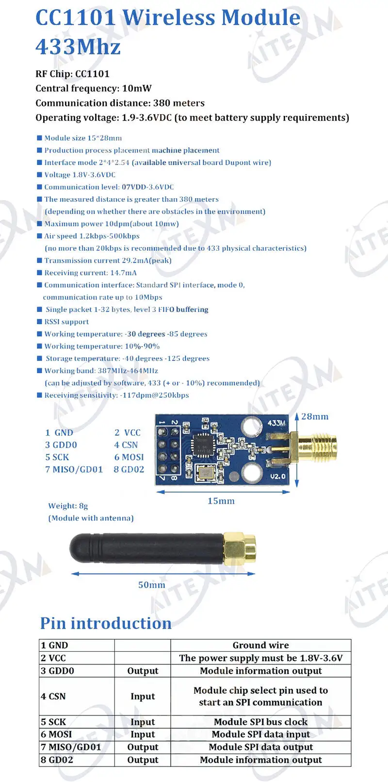 Módulo inalámbrico CC1101 de 433MHz con módulo transceptor inalámbrico de antena SMA para Arduino