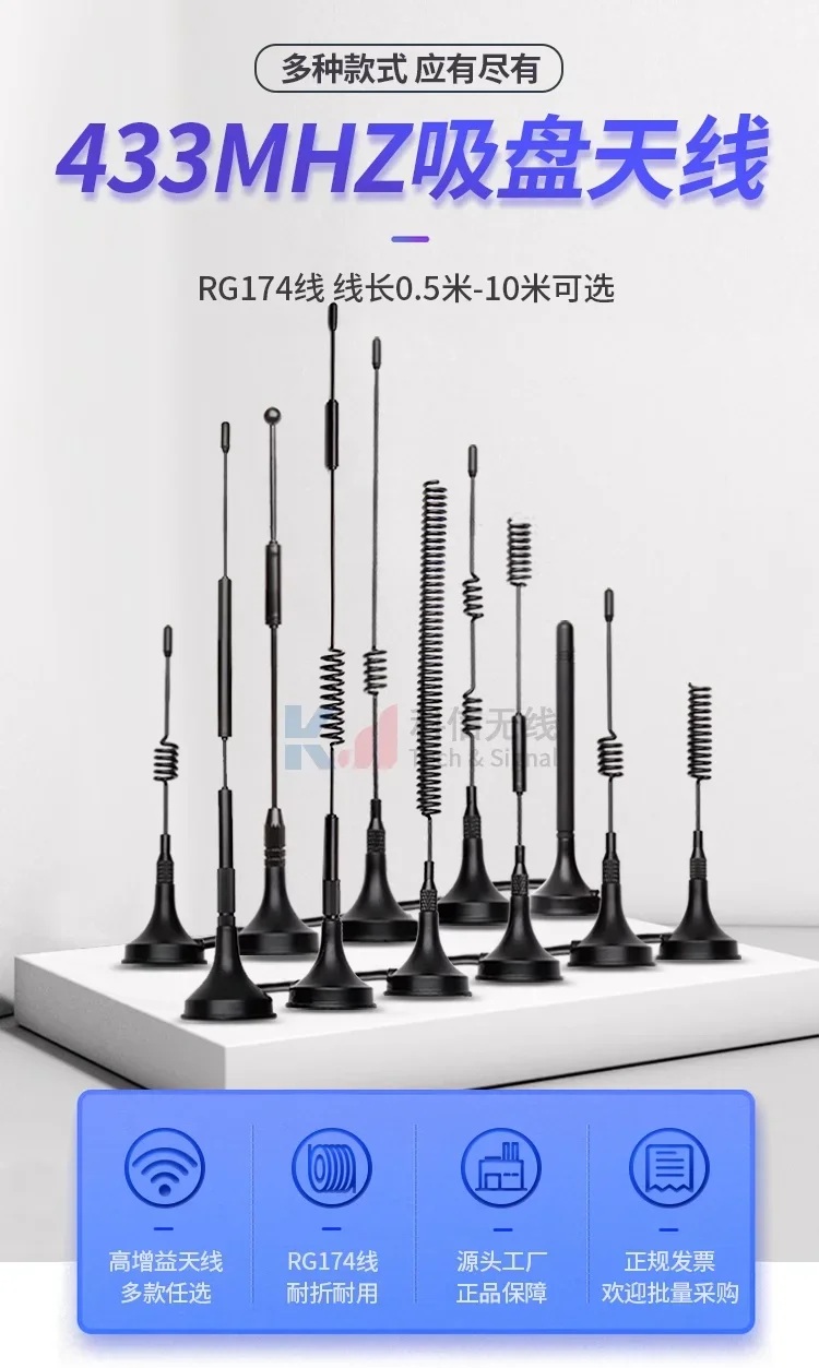 Módulo inalámbrico macho SMA de 433Mhz, 470MHZ, 315M, antena omnidireccional LORA con ventosa, sistema de lectura de medidor inteligente RG174, alta ganancia, 12DB