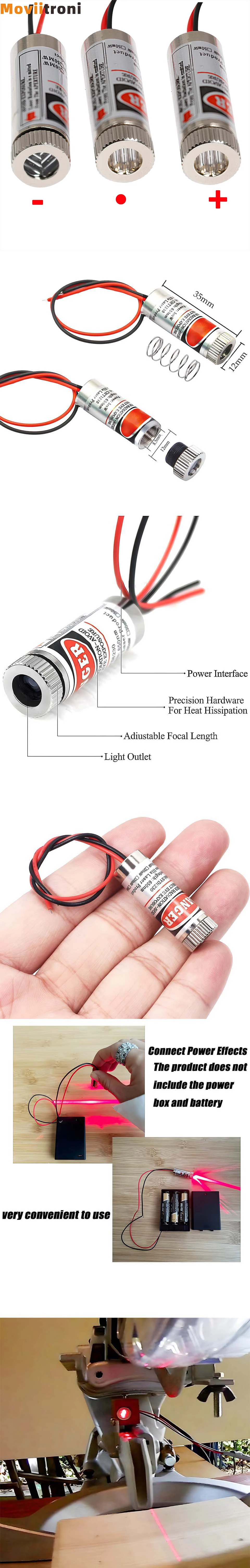 Módulo Industrial de línea roja de punto/línea/cruz láser, longitud Focal ajustable, 650nm, 12mm, 5mw