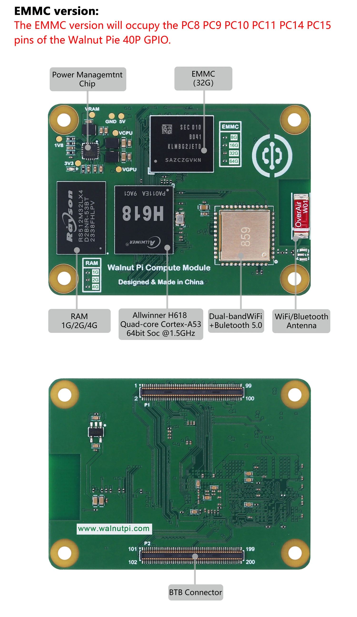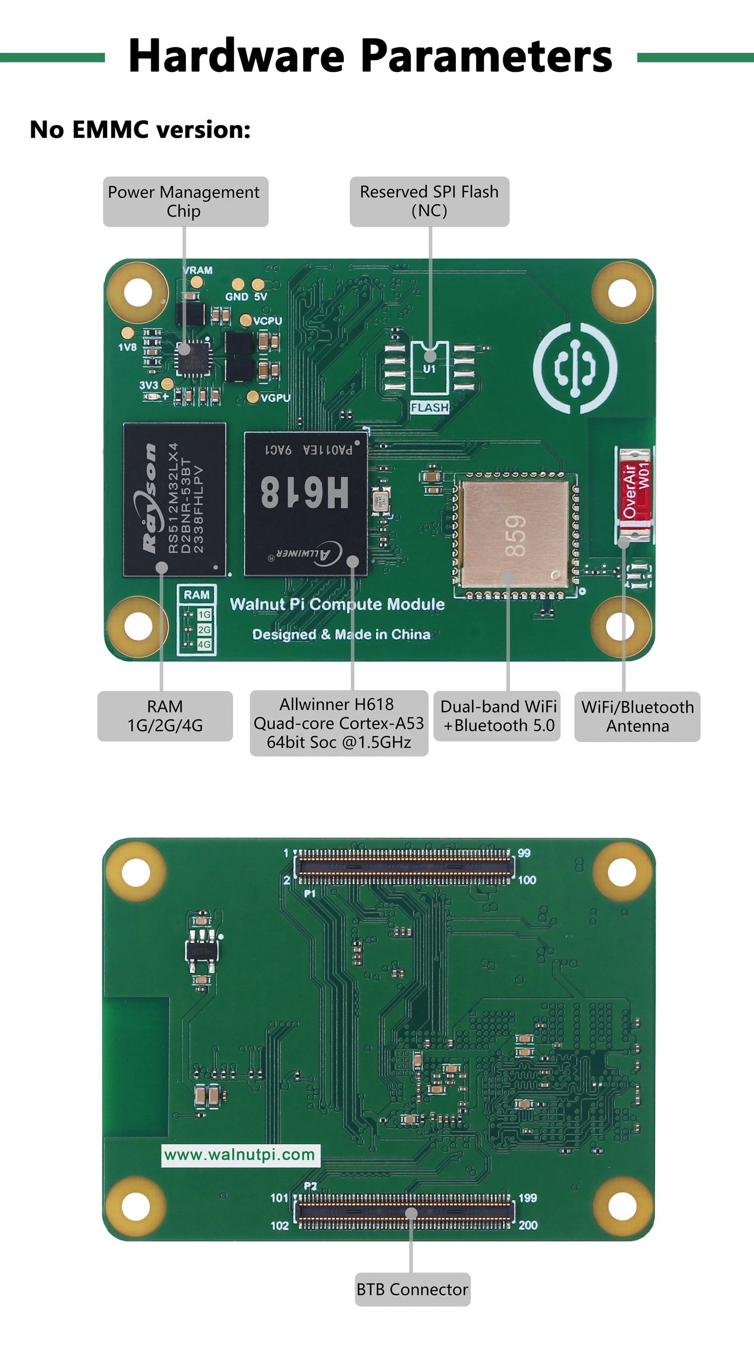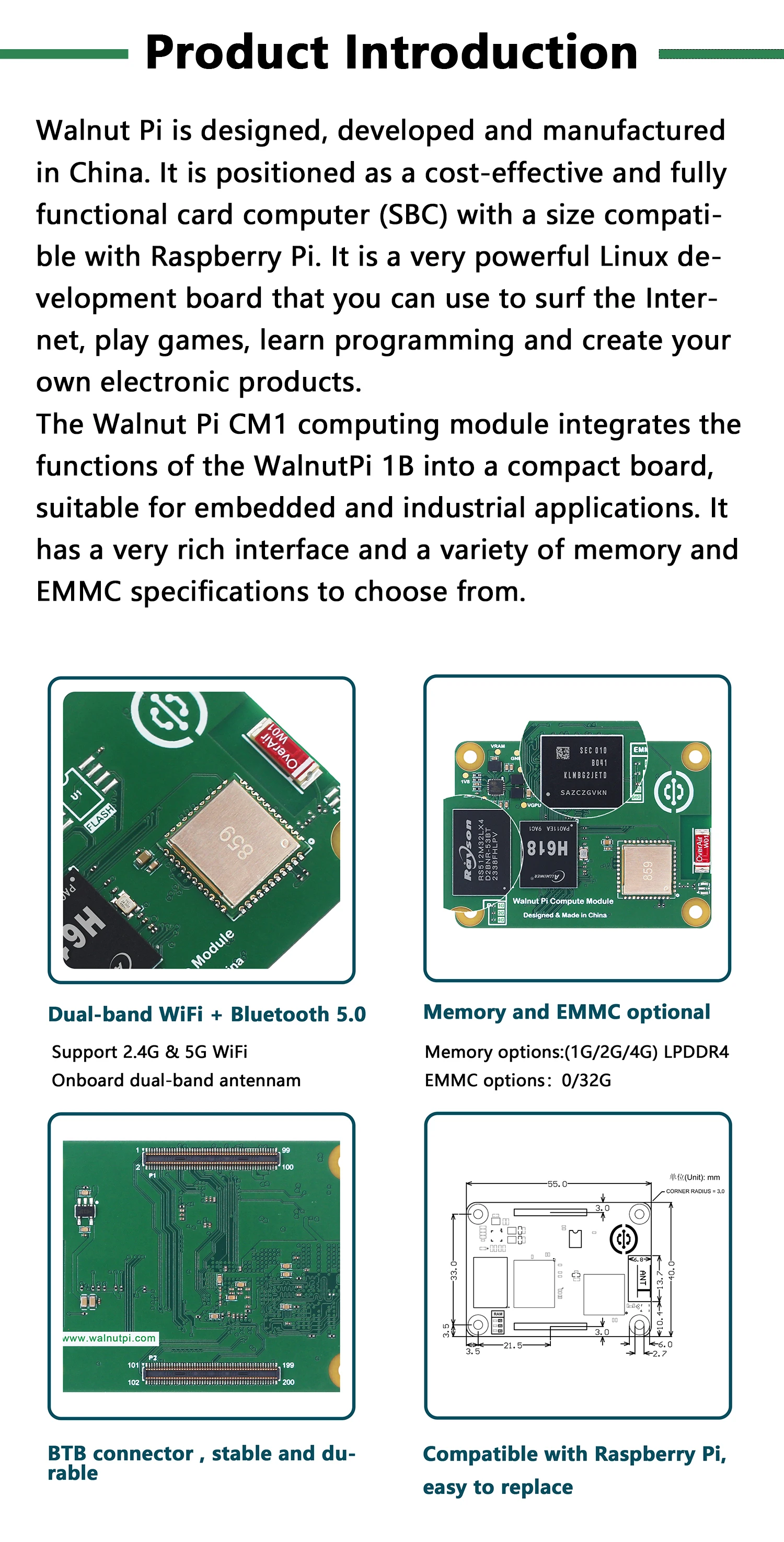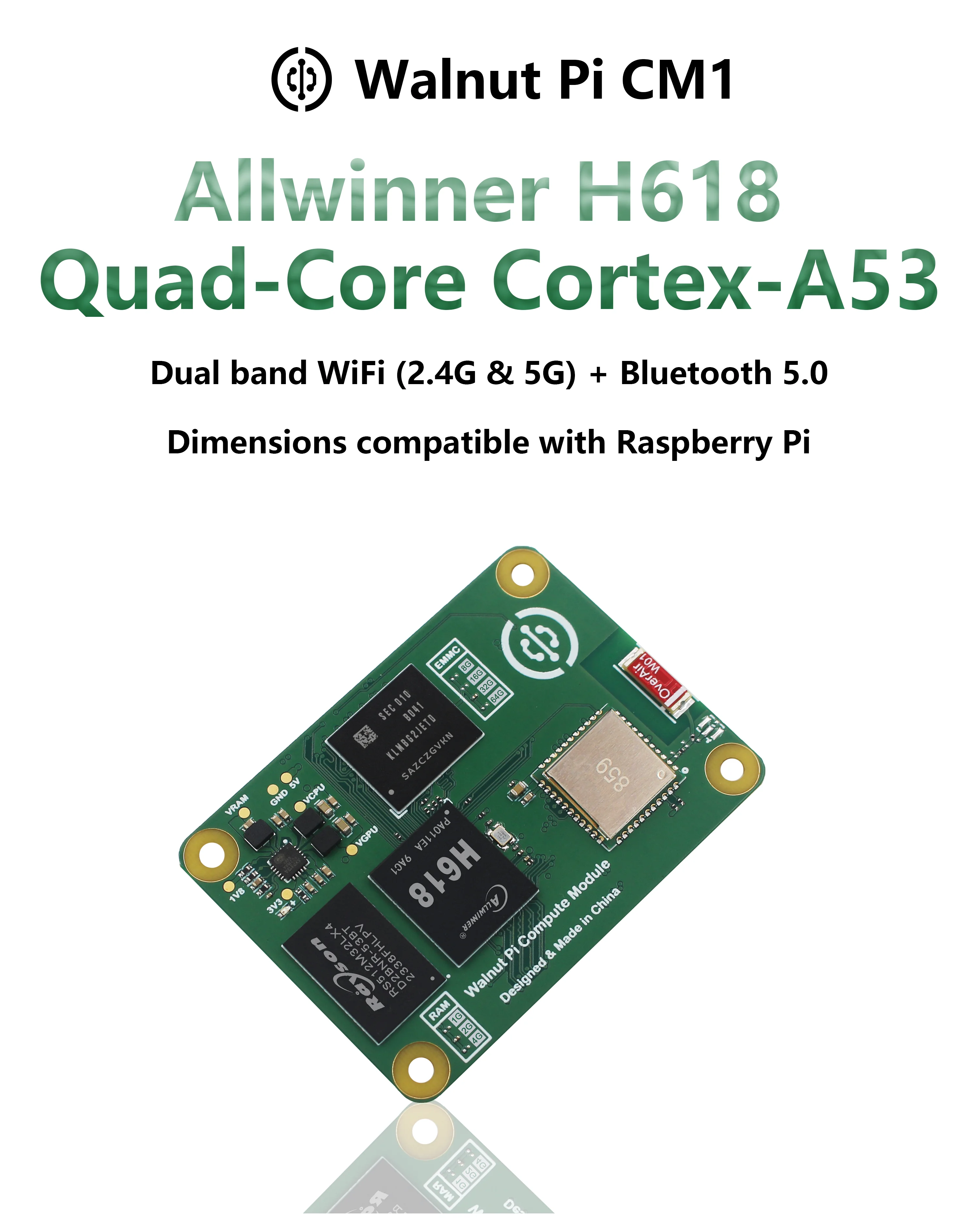 Módulo informático Walnut Pi CM1, placa de desarrollo de Mini PC con Bluetooth, WiFi, Allwinner H618, computadora SBC, Raspberry Pi CM4, 1/2/4GB