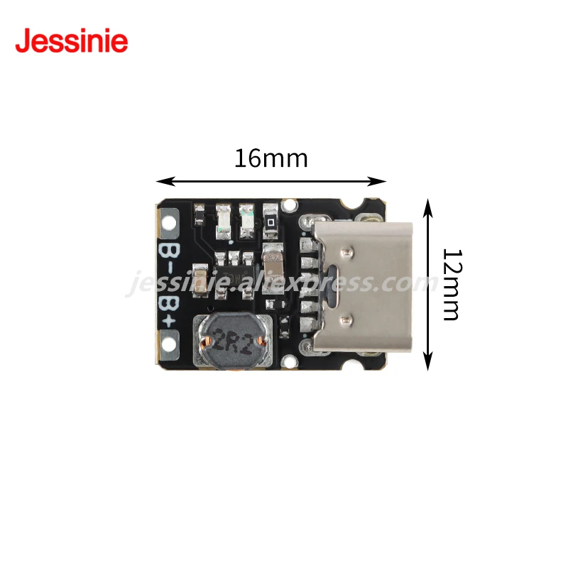 Instrucciones El módulo está listo para usar simplemente conectando los terminales positivo y negativo de una batería de litio de 3,7 V.El módulo en sí tiene protección contra sobrecarga y sobredescarga, y se puede agregar una placa de protección a la batería de litio. El puerto tipo C, los orificios de soldadura y los conectores de E/S reservados en la parte posterior son idénticos y conectados directamente, por lo que no hay diferencia entre los tres conectores.