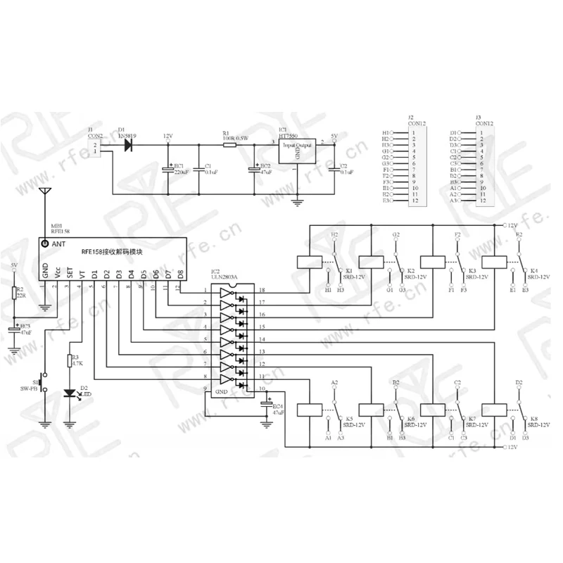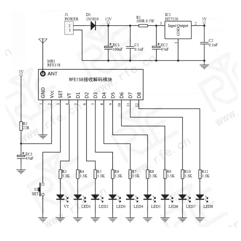 Comprar Módulo integrado de recepción y decodificación de 8 vías 433M eV1527 decodificación RFE158