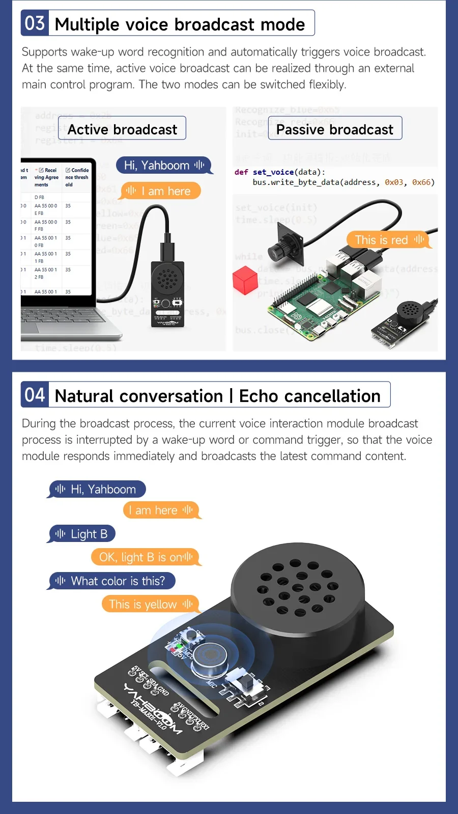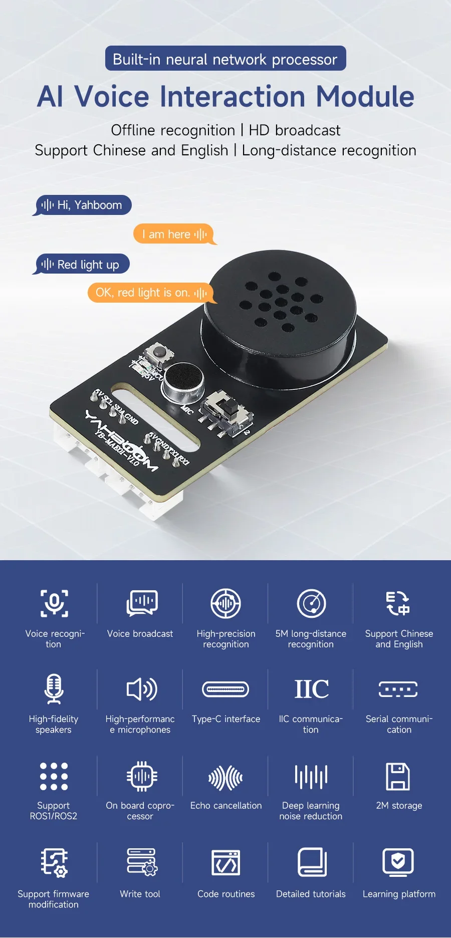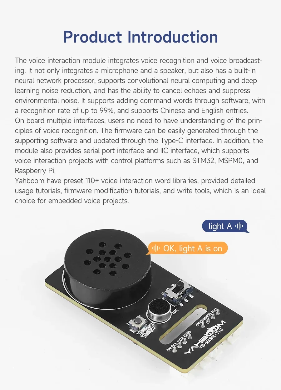 Módulo de interacción de voz Yahboom AI, transmisiones de reconocimiento de alta precisión, Sensor de sonido programable inteligente para juguetes robóticos