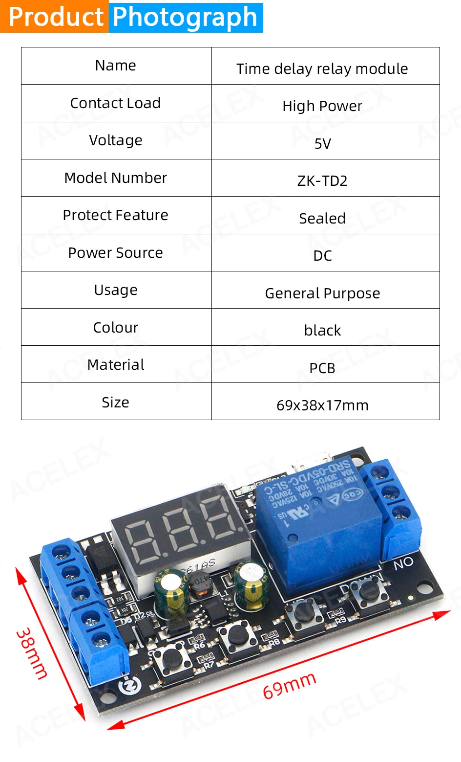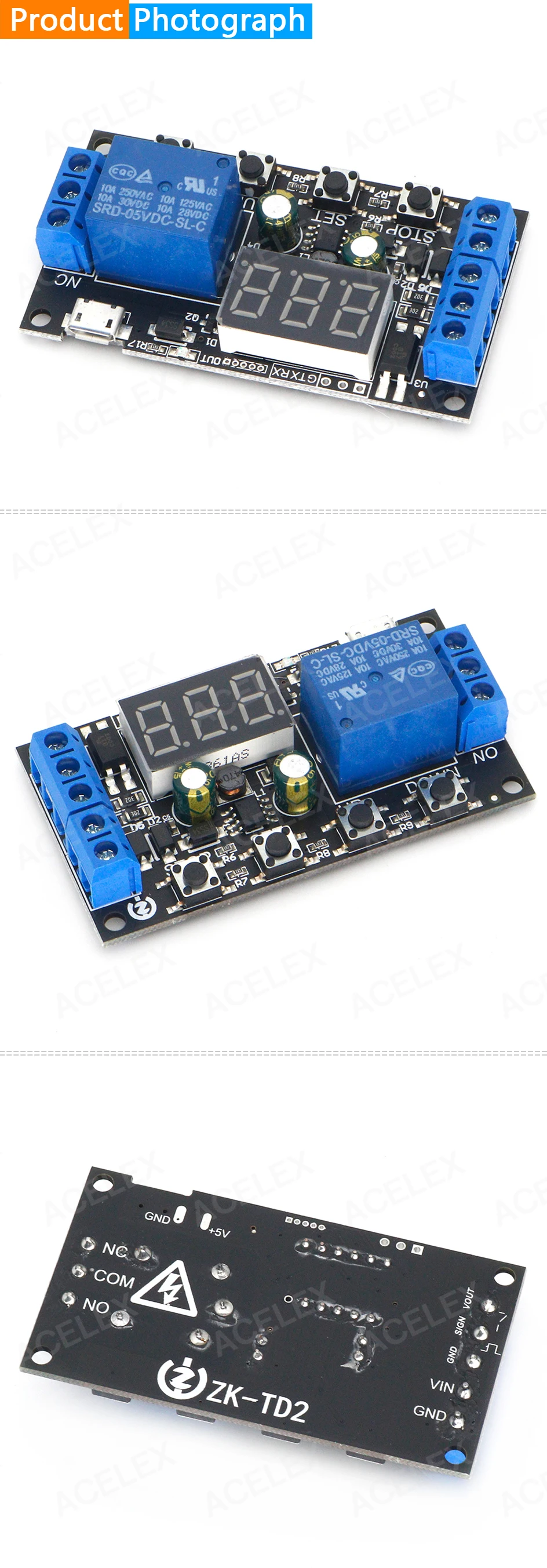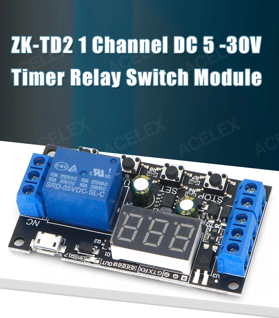 Módulo de interruptor de 1 canal DC 5 -30V, temporizador de encendido/apagado, temporizador de ciclo, con pantalla LED Digital, Micro USB 0,1 s -999min, ZK-TD2