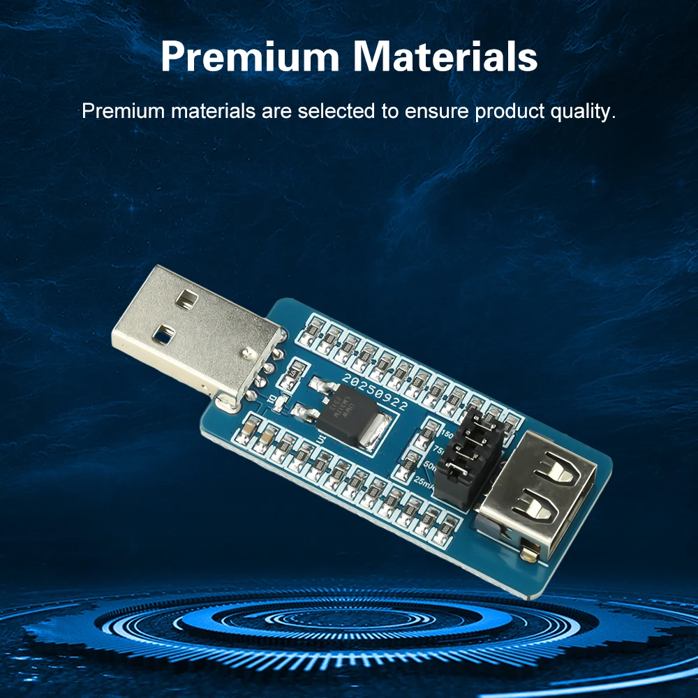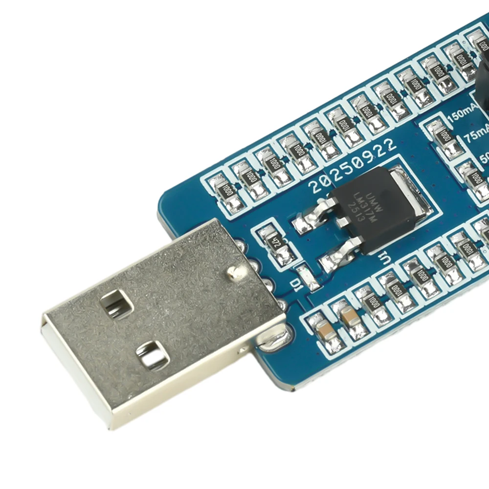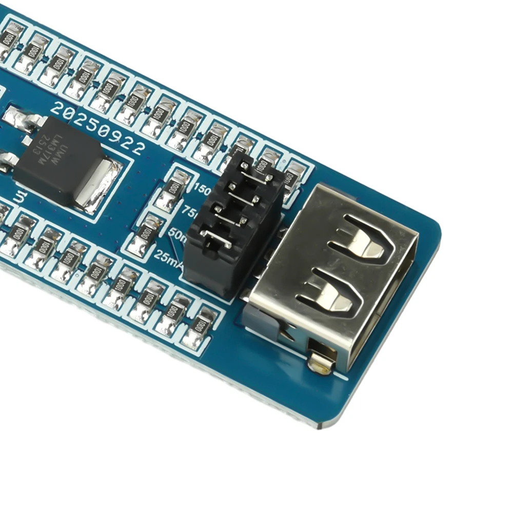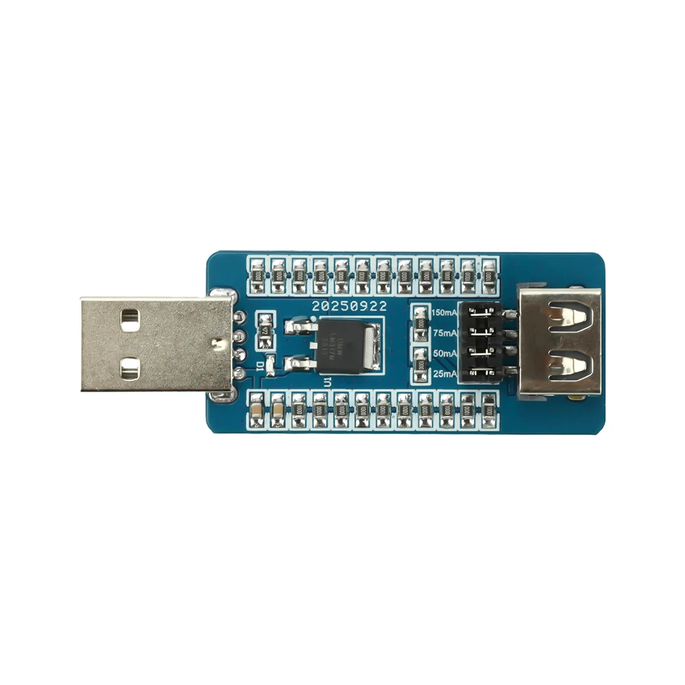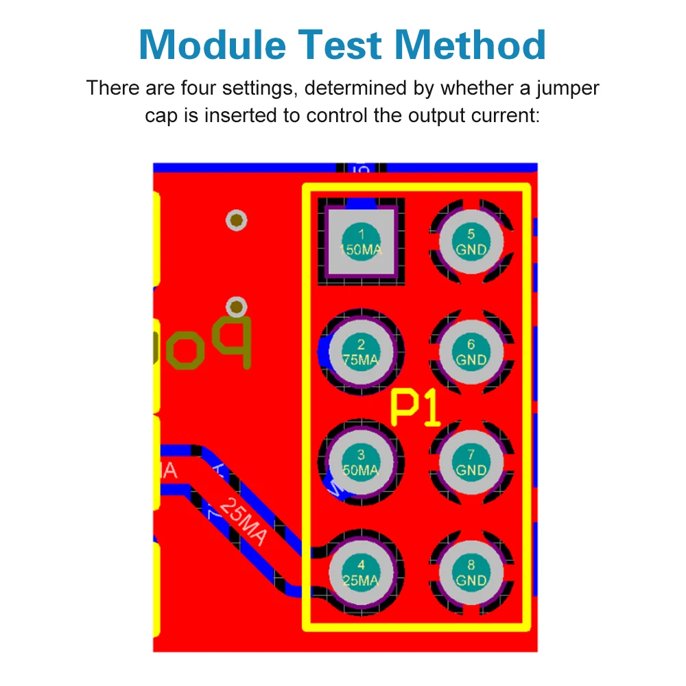Como herramienta para mantener la energía encendida, el producto se puede utilizar para pruebas de consumo de energía de bancos de energía, cargadores, etc.También se puede utilizar como carga para consumir corriente y evitar que los bancos de energía se apaguen debido a la baja corriente.La mayoría de los bancos de energía, cuando no detectan corriente o muy baja corriente, son como teléfonos completamente cargados o desconectados.Después de varios segundos a minutos, se apagarán automáticamente.Este módulo mantiene una cierta cantidad de consumo de corriente adicional para mantener el banco de energía encendido.Este producto utiliza una interfaz USB-A y puede cambiar la corriente consumida conectando y desconectando la tapa del puente.Hay cuatro configuraciones: 25ma, 50ma, 75ma y 150ma, que se pueden combinar y ajustar según la situación real del banco de energía.Si no puede mantener la alimentación encendida, se puede conectar una tapa de puente adicional.Por ejemplo, insertarlo en una posición de 50 mA consume 50 mA de corriente.Si el banco de energía está apagado, inserte otro 25 mA u otro mA hasta que la corriente pueda mantener encendida el banco de energía.La corriente máxima que se puede lograr es 150+75+50+25mA=300mA