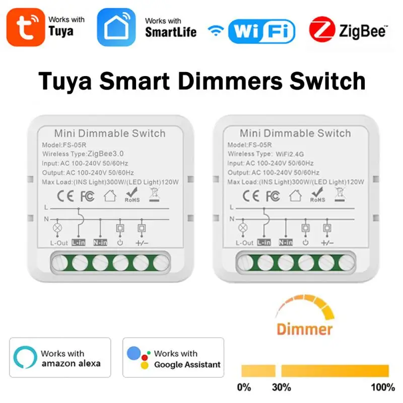 Comprar Módulo de interruptor de atenuadores inteligentes ZigBee/WiFi, admite Control bidireccional, luces LED, interruptor regulable, funciona con Tuya, Alexa y Google Home