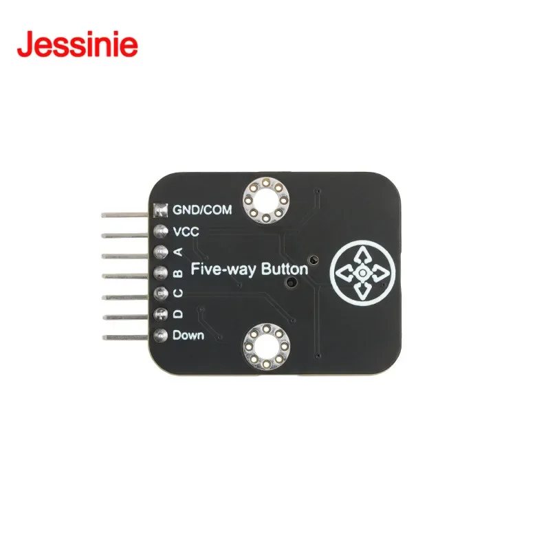 Este módulo puede simular acciones en cinco direcciones: arriba, abajo, izquierda, derecha y vertical (abajo).Cada una de las cinco direcciones es un interruptor que emite un voltaje de señal de nivel alto y bajo para su uso mediante la placa de desarrollo del microcontrolador o módulos que requieren control de señal de nivel alto y bajo.Cuando se presiona el interruptor en cada dirección, el LED indicador correspondiente se enciende y se apaga cuando se suelta.Después del encendido, el LED indicador de alimentación del módulo permanece encendido.El terminal negativo de la fuente de alimentación GND y el terminal común COM del interruptor de cinco vías comparten un pin.Cuando el módulo no está encendido, las cinco direcciones A, D, C, D, abajo y el terminal común COM forman cinco interruptores independientes comunes para su uso.Por lo tanto, este módulo tiene dos métodos de uso.Cuando se enciende, genera señales de nivel alto y bajo para cinco acciones direccionales a través de botones.Cuando no está encendido o conectado a VCC y GND, se utiliza como cinco interruptores pequeños independientes comunes.