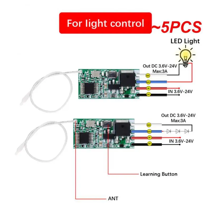 Módulo de interruptor de Control remoto micro inalámbrico de 1 ~ 5 DC12V 24V Mini Control unidireccional Kite Light Gabinete Luz LED String Light