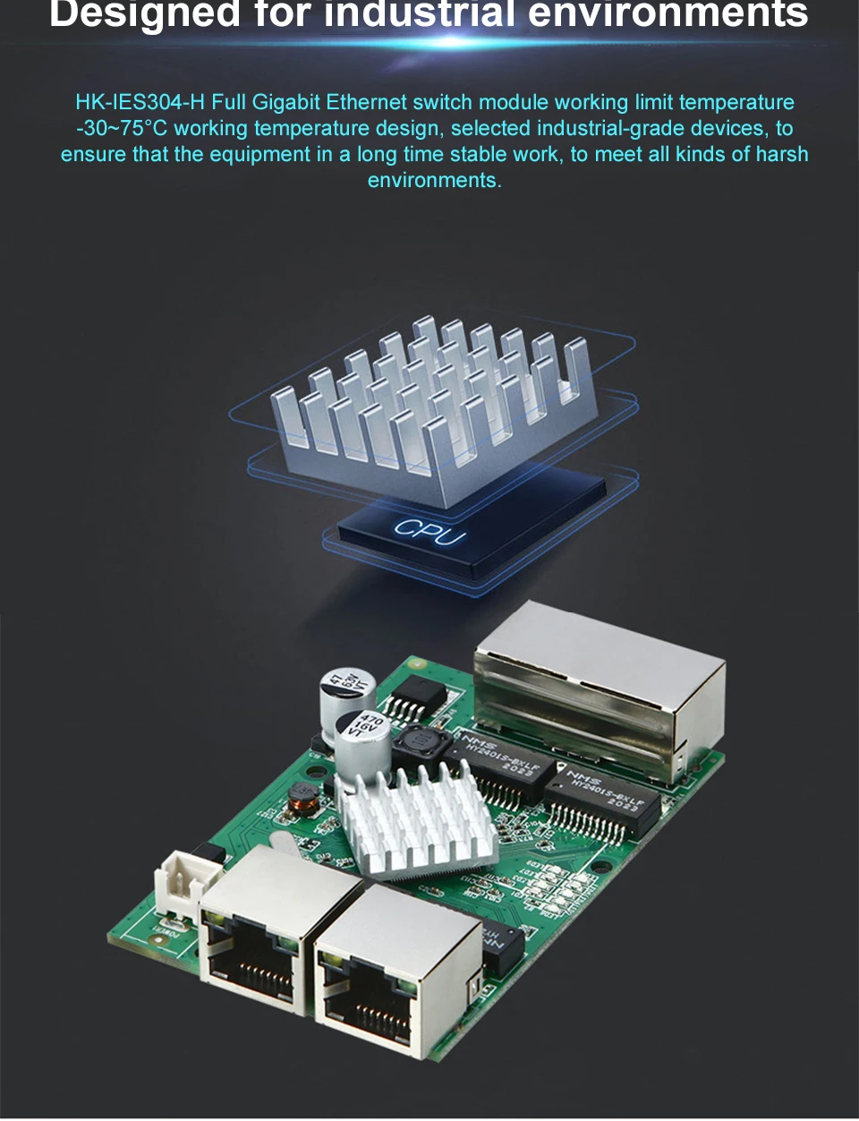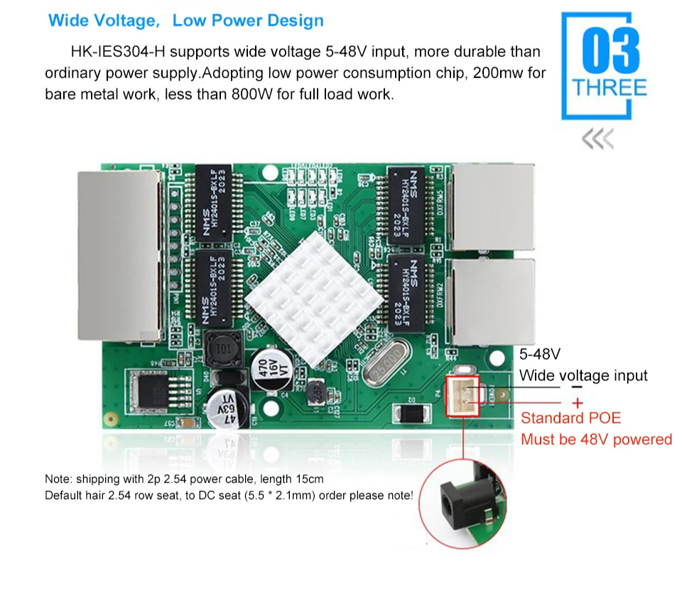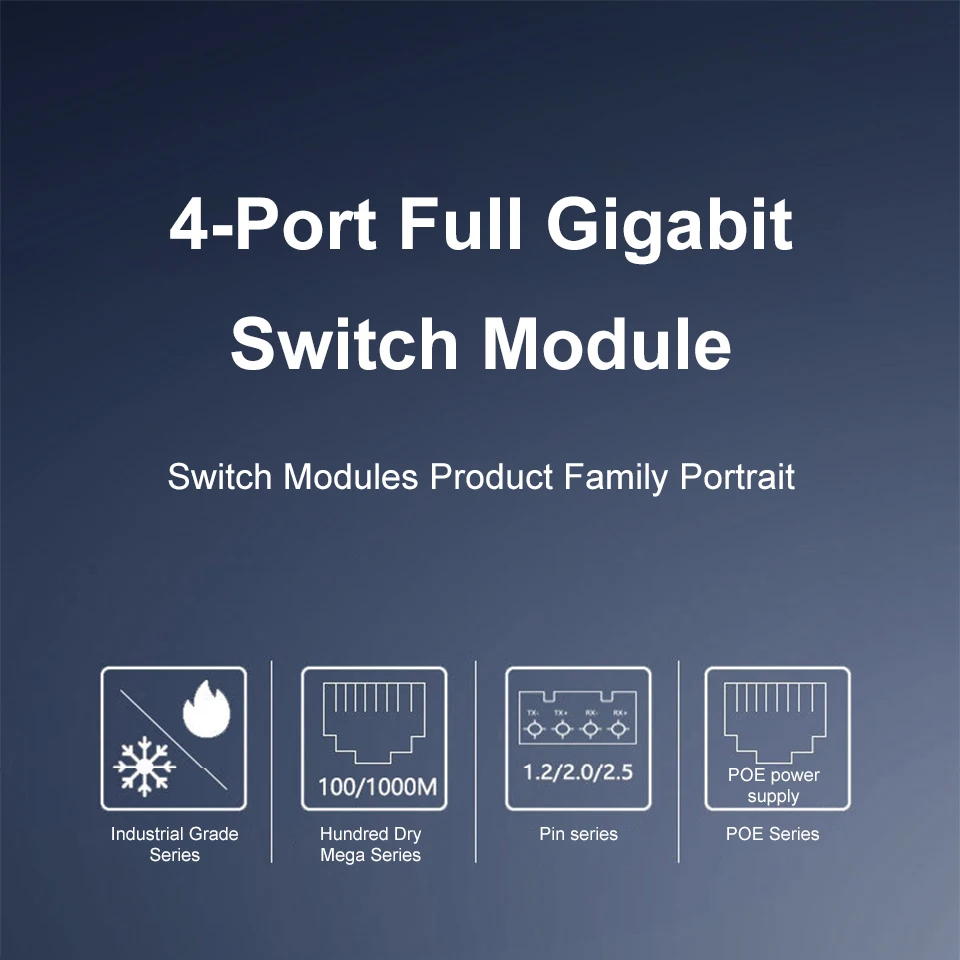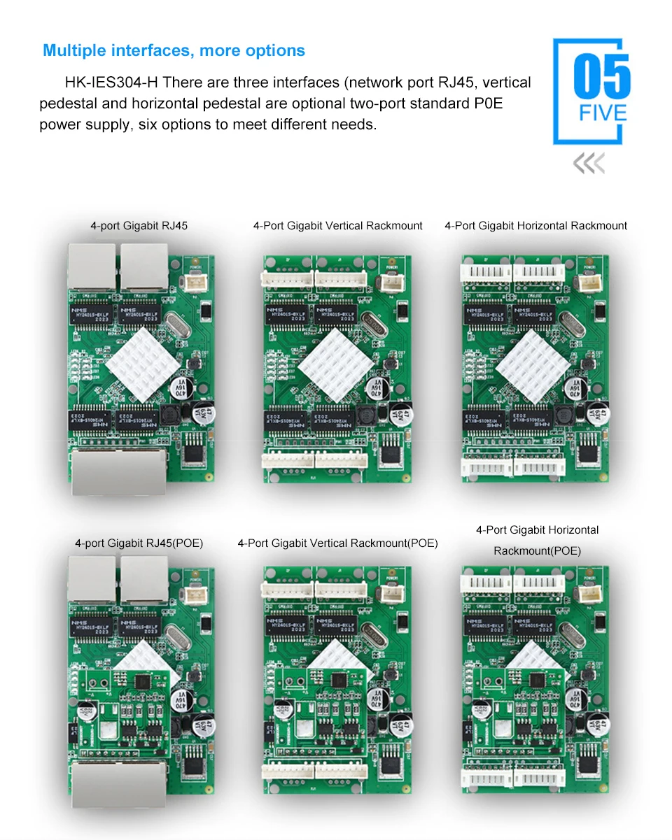 Módulo de interruptor Gigabit de 4 puertos PCBA estándar fuente de alimentación POE industrial micro amplio voltaje 48V placa base PCBA no administrada
