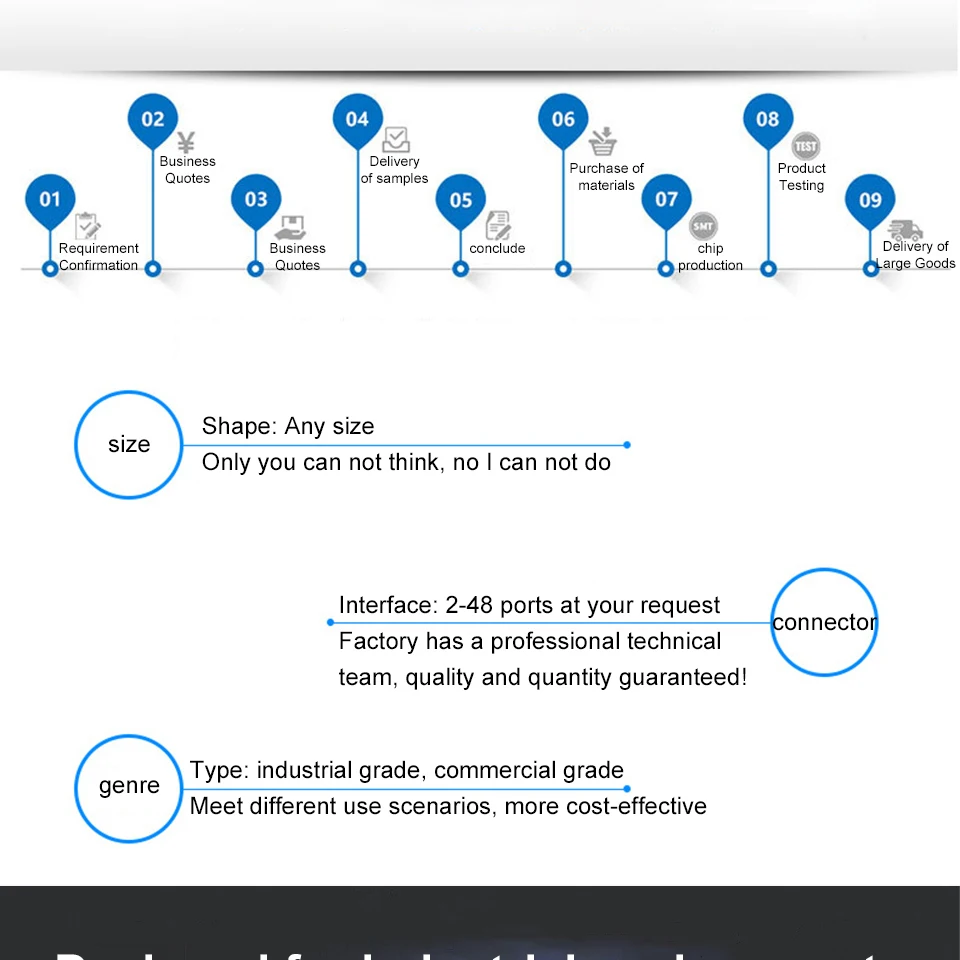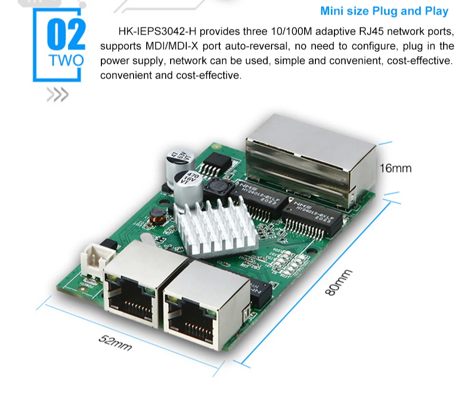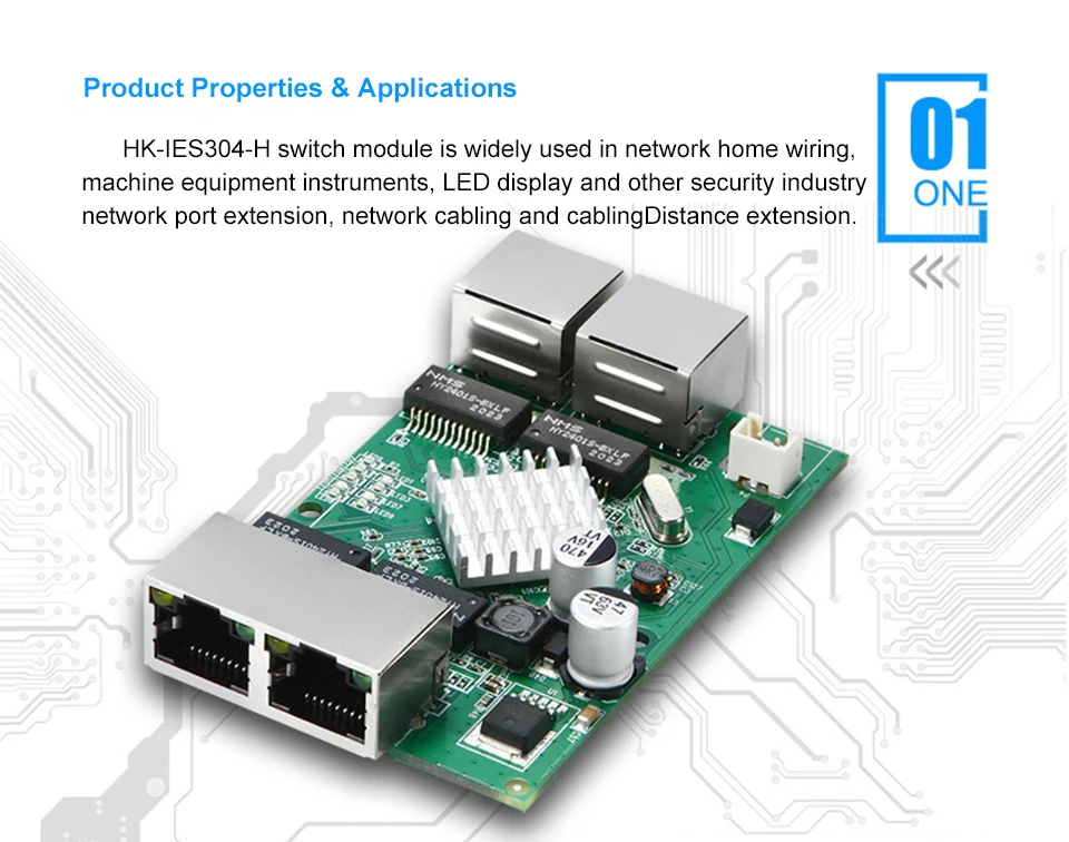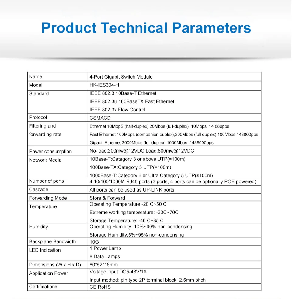 Módulo de interruptor Gigabit de 4 puertos PCBA estándar fuente de alimentación POE industrial micro amplio voltaje 48V placa base PCBA no administrada