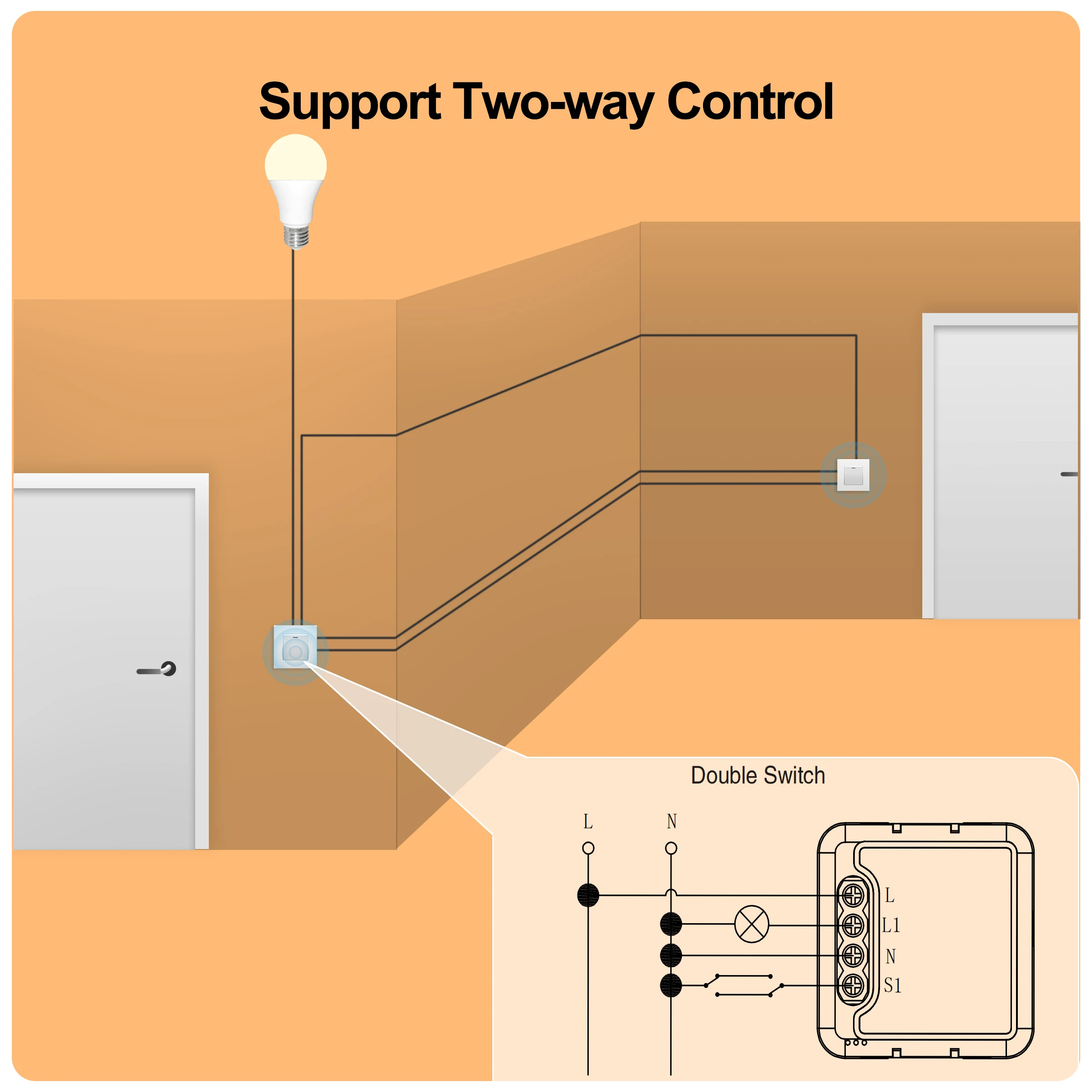 --Este interruptor inteligente de bricolaje podría usarse para su antiguo interruptor de control de 2 vías.Especialmente, todavía está disponible para controlar el interruptor antiguo manualmente después de instalarlo.