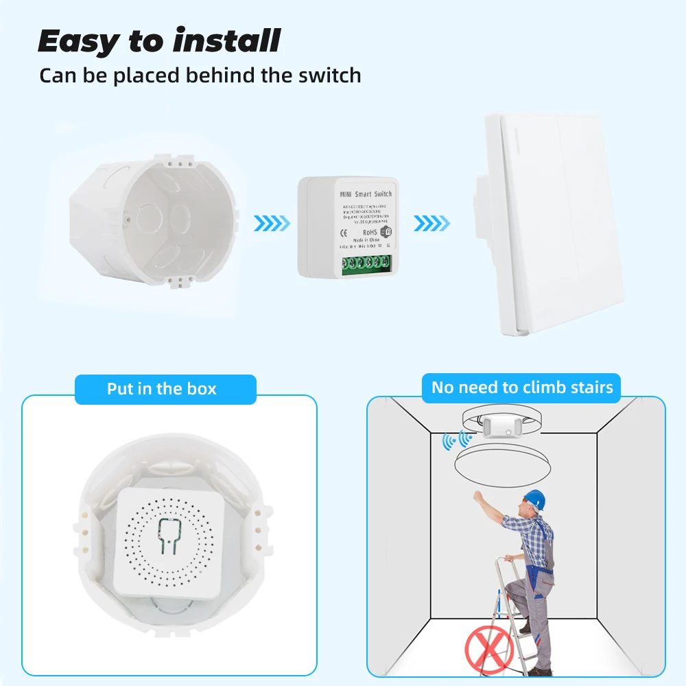 --Podemos colocarlo directamente en la caja inferior del interruptor.Para que no tengas que subir escaleras para instalar el controlador