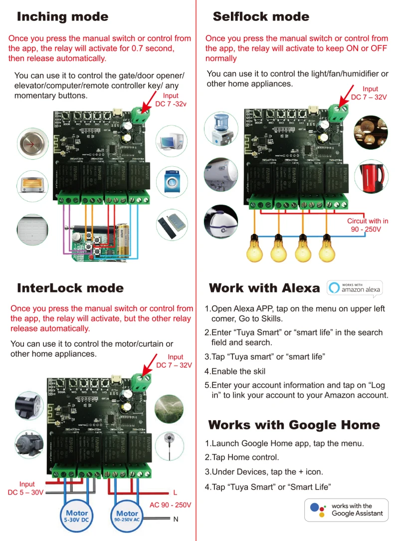 Comprar Módulo de interruptor inteligente Tuya, 1/2/2 piezas, 1/2/4 canales, 5V-32V CC, módulo de Control por aplicación Smart Life, temporizador