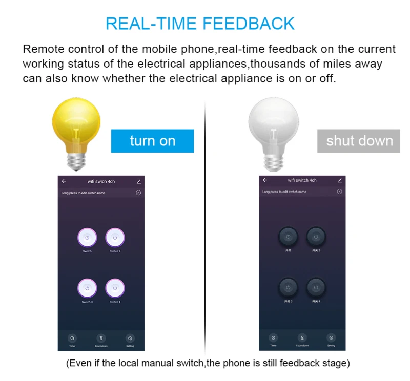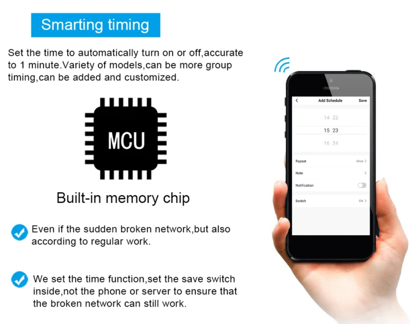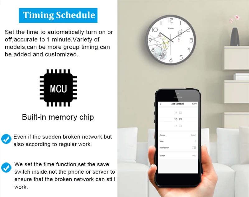 * Compatible con Red WiFi: admite numerosos interruptores inteligentes WiFi para teléfonos inteligentes.