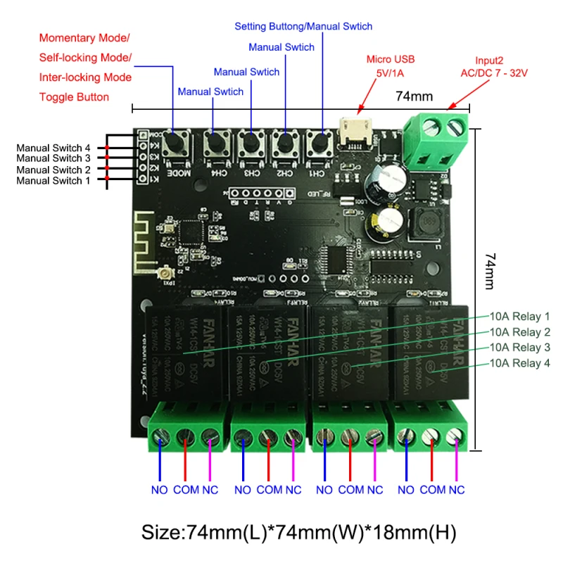 Módulo de interruptor inteligente de relé WiFi Tuya de 1/2/2/4CH DC 5V-32V, módulo de interruptor de vida inteligente, módulo de Control de aplicación, temporizador de avance