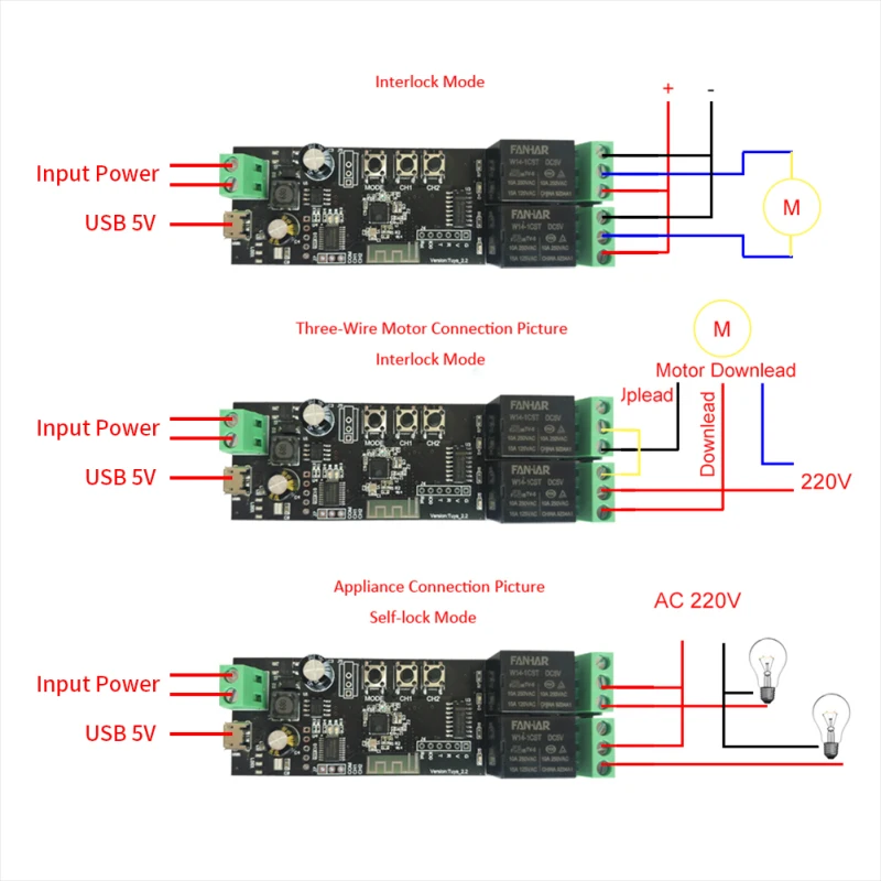 2 canales: dos canales, interruptor de avance/autobloqueo, módulo WiFi de control de dos canales CE / RoHS