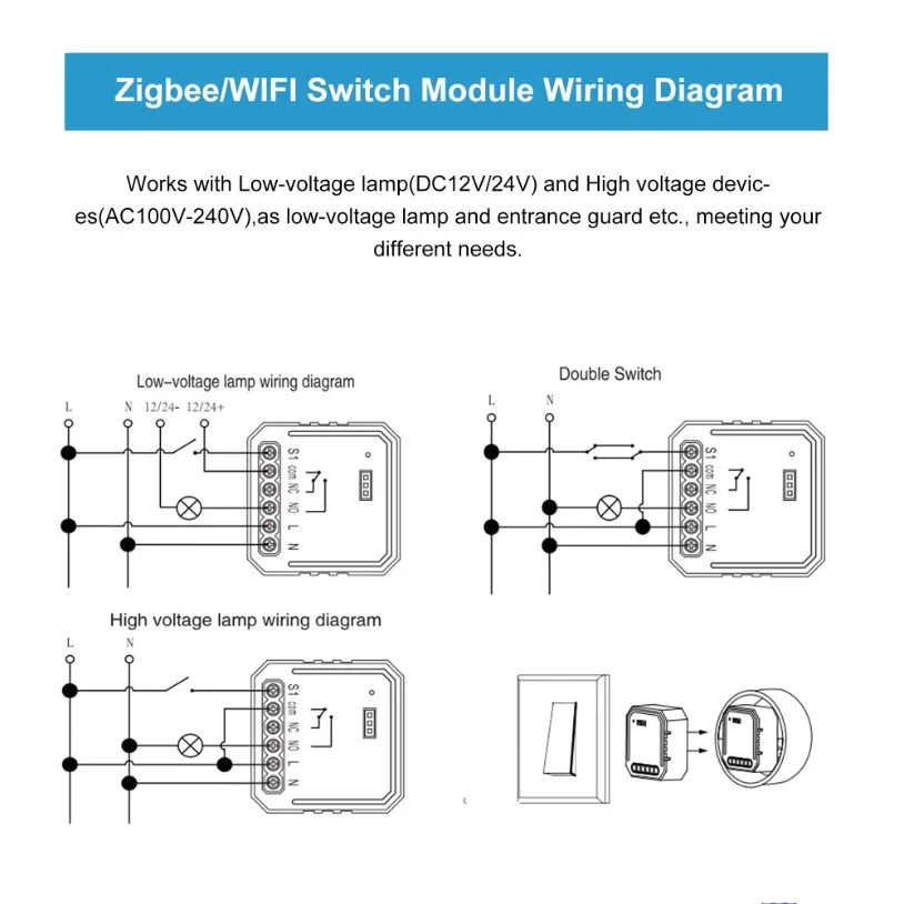 Comprar Módulo de interruptor inteligente WiFi ZigBee, 12/24V CA, 100-240V, contacto en seco, CC, hogar inteligente, relé de interruptor DIY, funciona con Alexa, Google Alice
