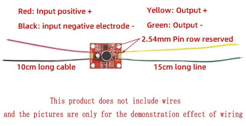 Después de conectar el módulo a la electricidad, aplaude las manos dentro de 2 metros, se enciende el extremo de salida, si se conecta a la lámpara, la luz eléctrica se encenderá, si se conecta al motor, el motor girará;Después de un retraso de 10 S, el extremo de salida se desconectará automáticamente, la luz se apagará o el motor dejará de funcionar;Tenga en cuenta que los terminales de entrada y salida están divididos en terminales positivos y negativos.La entrada correcta y la conexión negativa pueden causar daños.