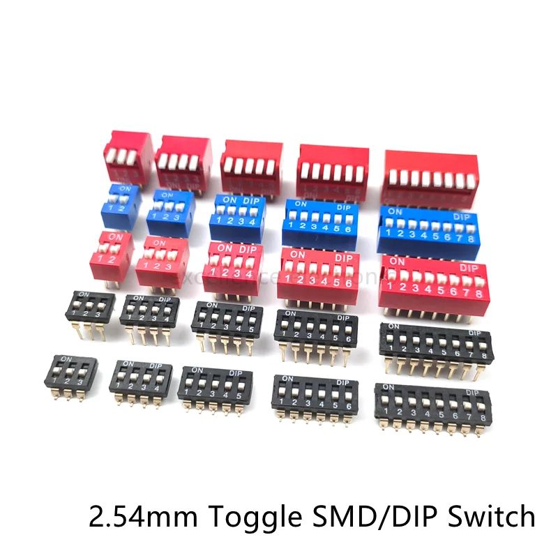 Comprar Módulo de interruptor de tipo deslizante de 5 piezas, 1, 2, 3, 4, 5, 6, 7, 8, 10 bits, 2,54mm, modo de posición DIP/SMD, interruptor de palanca de paso, Dial de interruptor a presión rojo/azul