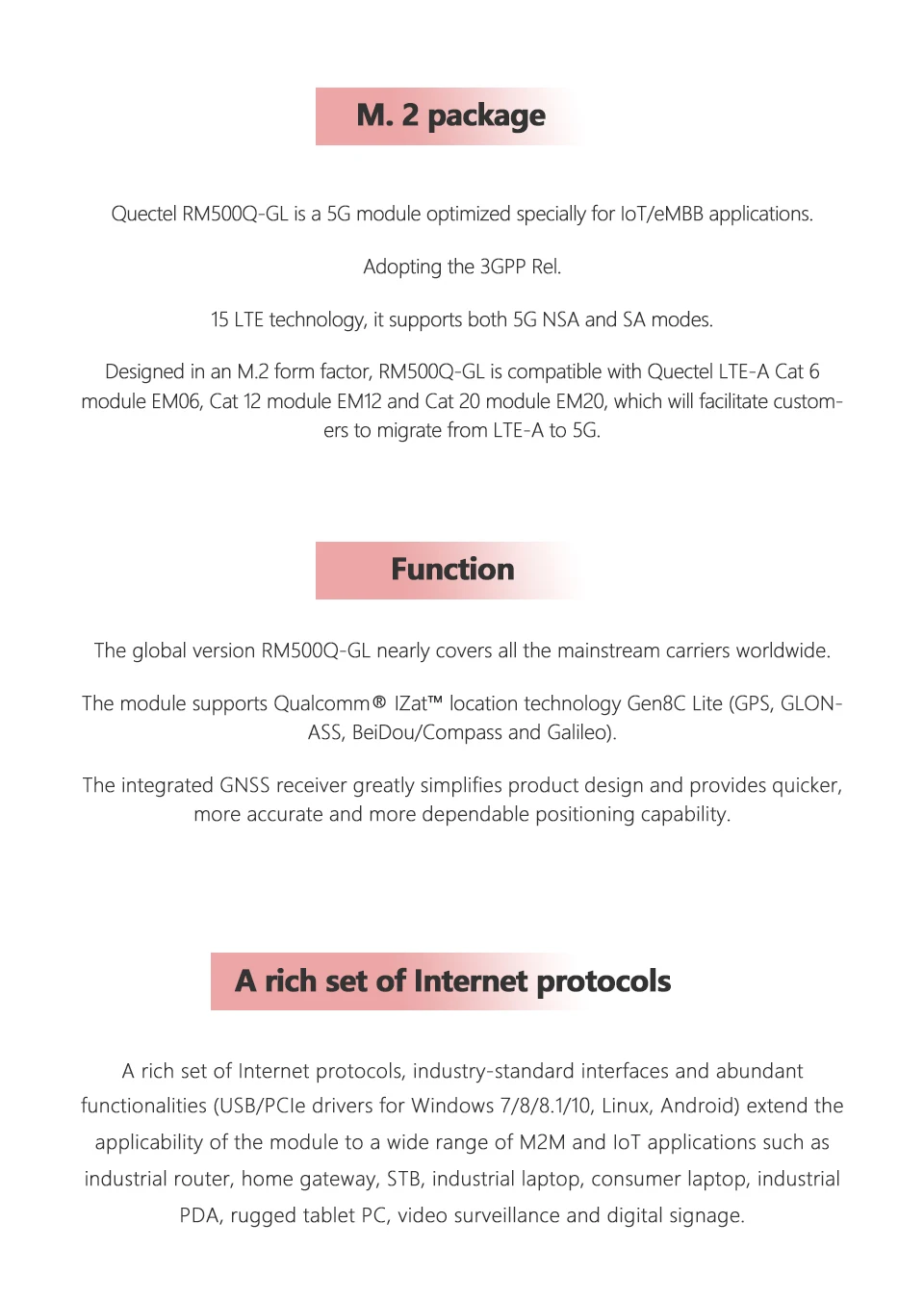 Módulo IoT/eMBB Quectel 5G Sub-6 GHz RM500U RM500U-CN admite el módulo M.2 de modo NSA y SA 5G/4G/3G