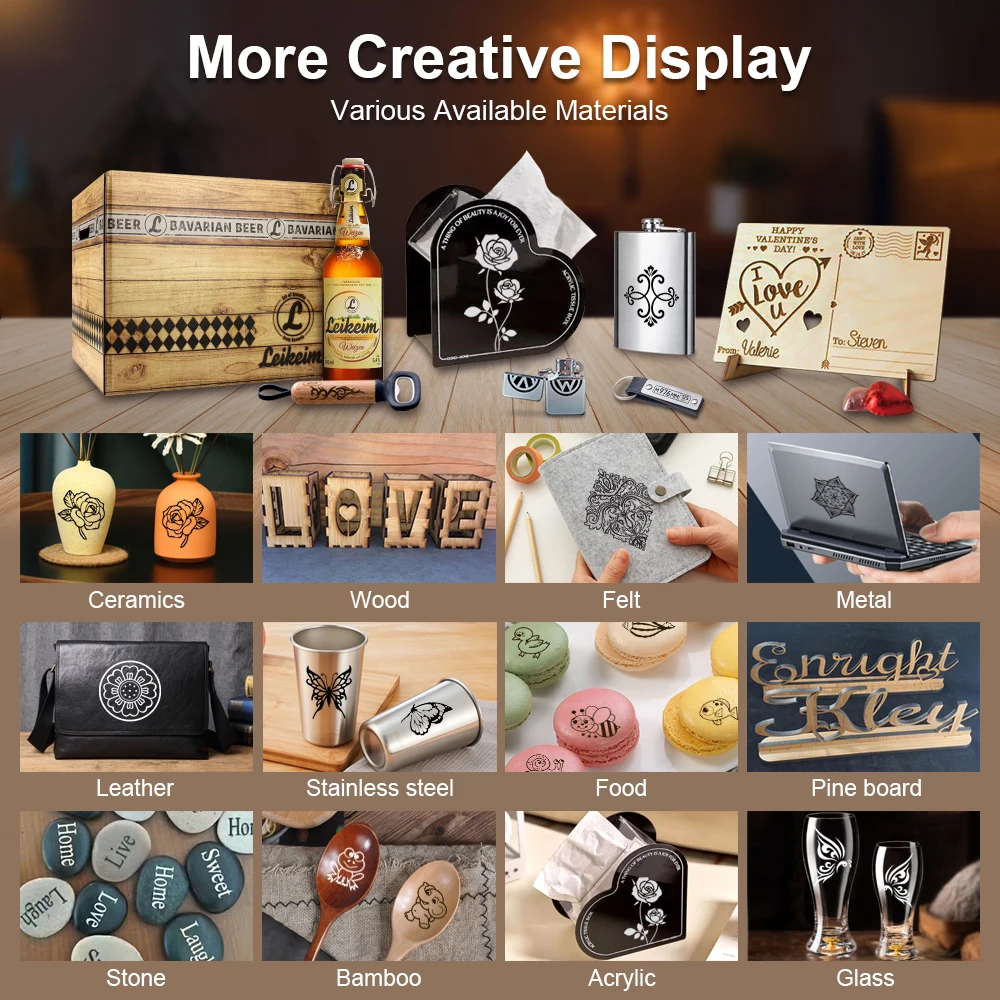 👍 【Diseño de bajo ruido】La potente capacidad de corte por láser de 10 W y el dispositivo asistido por aire más potente hacen que la máquina de grabado funcione más fácilmente. La amplitud de la vibración asistida por aire es muy pequeña y no afectará en absoluto el enfoque del láser, y mucho menos la integridad y continuidad del trabajo del grabador. Tiene muy buena capacidad de reducción de ruido.