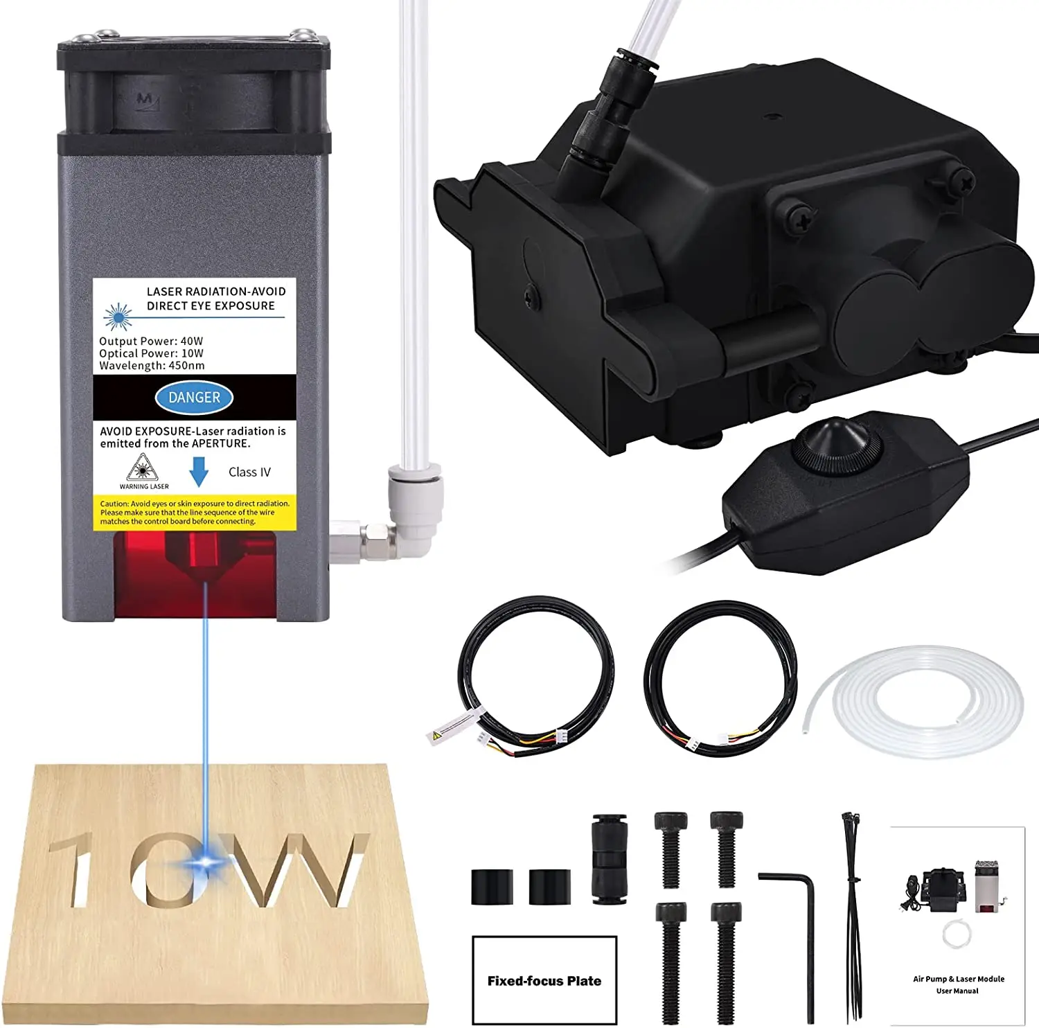 👍【Gran compatibilidad】 El módulo de grabado de 10 W (12 V, GND, PWM) con asistencia aérea es compatible con la mayoría de las máquinas de corte y grabado láser, enrutadores cnc, impresoras 3D, etc.Y esta combinación perfecta (módulo láser de 10 W con asiento aéreo) es ideal para grabar, cortar, marcar y perforar.