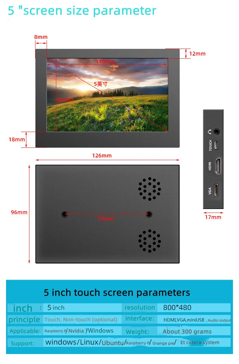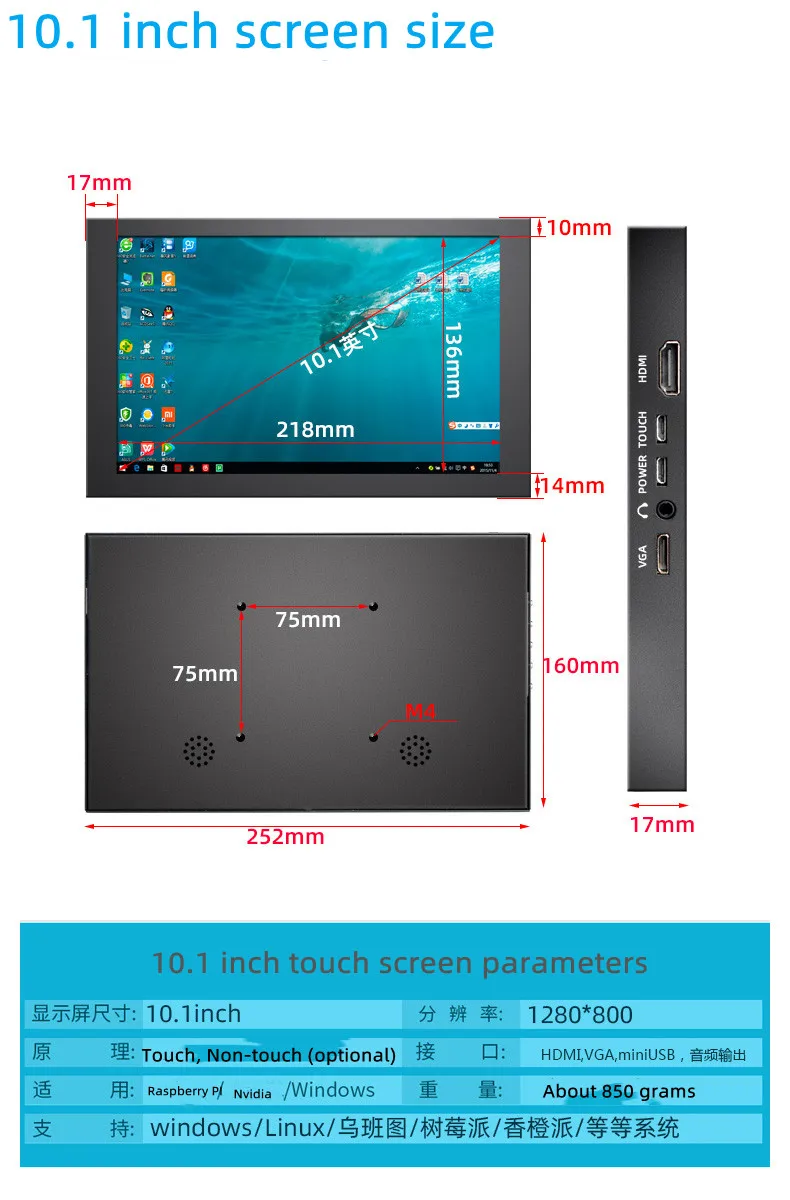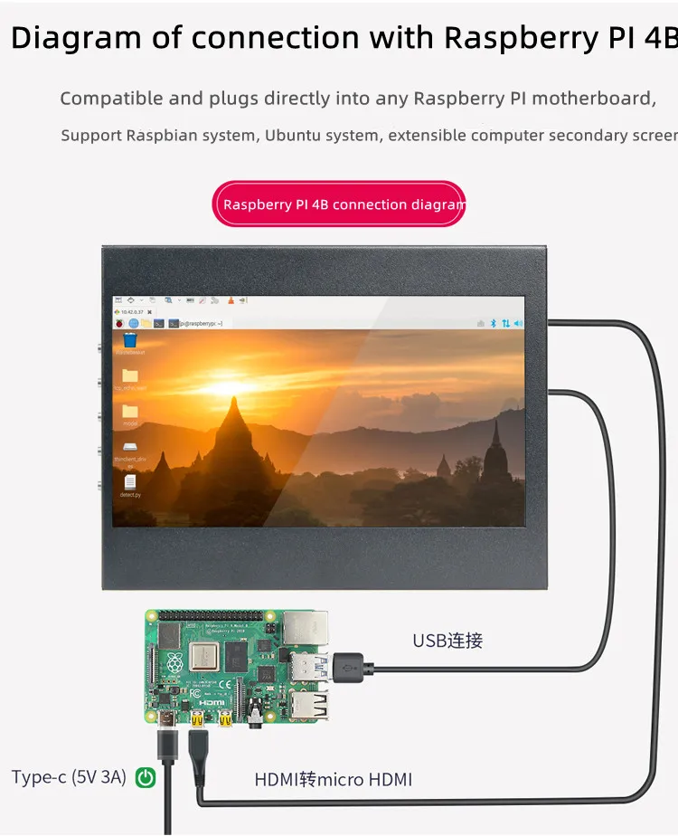 Módulo LCD de 5 pulgadas y 10,1 pulgadas, pantalla IPS de 1280x800, raspberry pi con pantalla táctil, compatible con pi3, pi4, 3B, orange pi, banana pi
