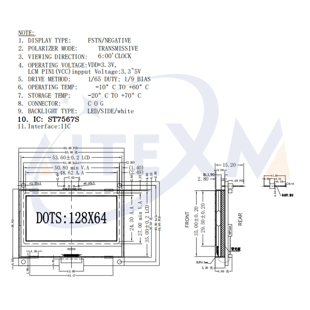 Dimensión del contorno: 56,00 (W)x44.60(H)x15.2.00(T)mm