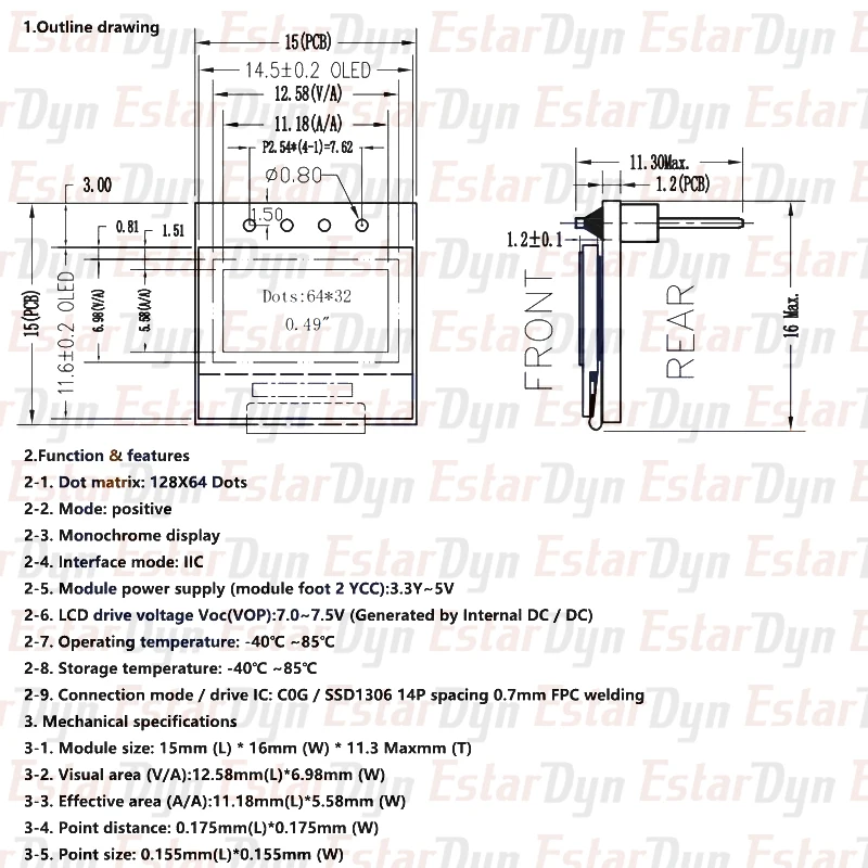 Comprar Módulo LCD de pantalla OLED de 0,49 pulgadas, pantalla blanca de 0,49 ", interfaz I2C IIC 64x32, controlador SSD1306 para Arduino AVR STM32