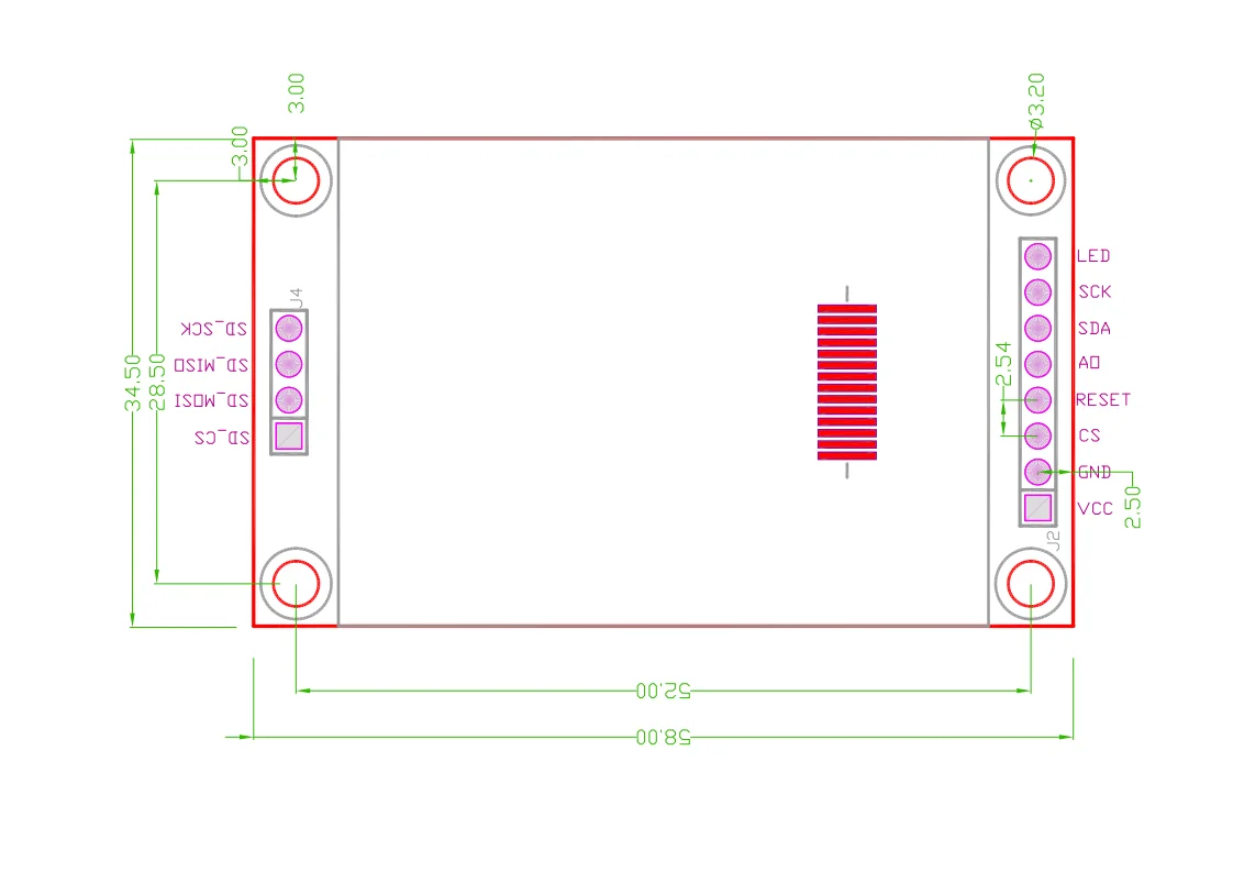 ●Fuente de alimentación TFT: la fuente de alimentación de la pantalla es de 2,8 3,3 V; recuerde no utilizar 5V