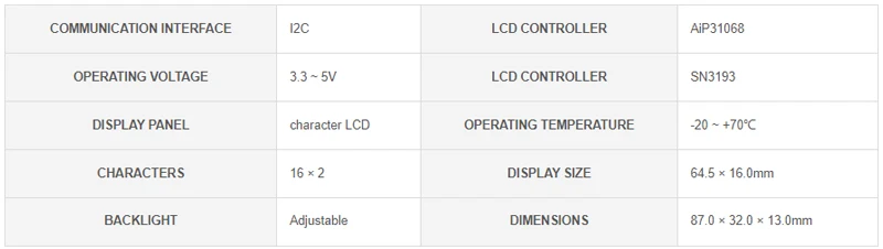 Comunicación I2C, compatible con 3,3 V/5 V, retroiluminación ajustable