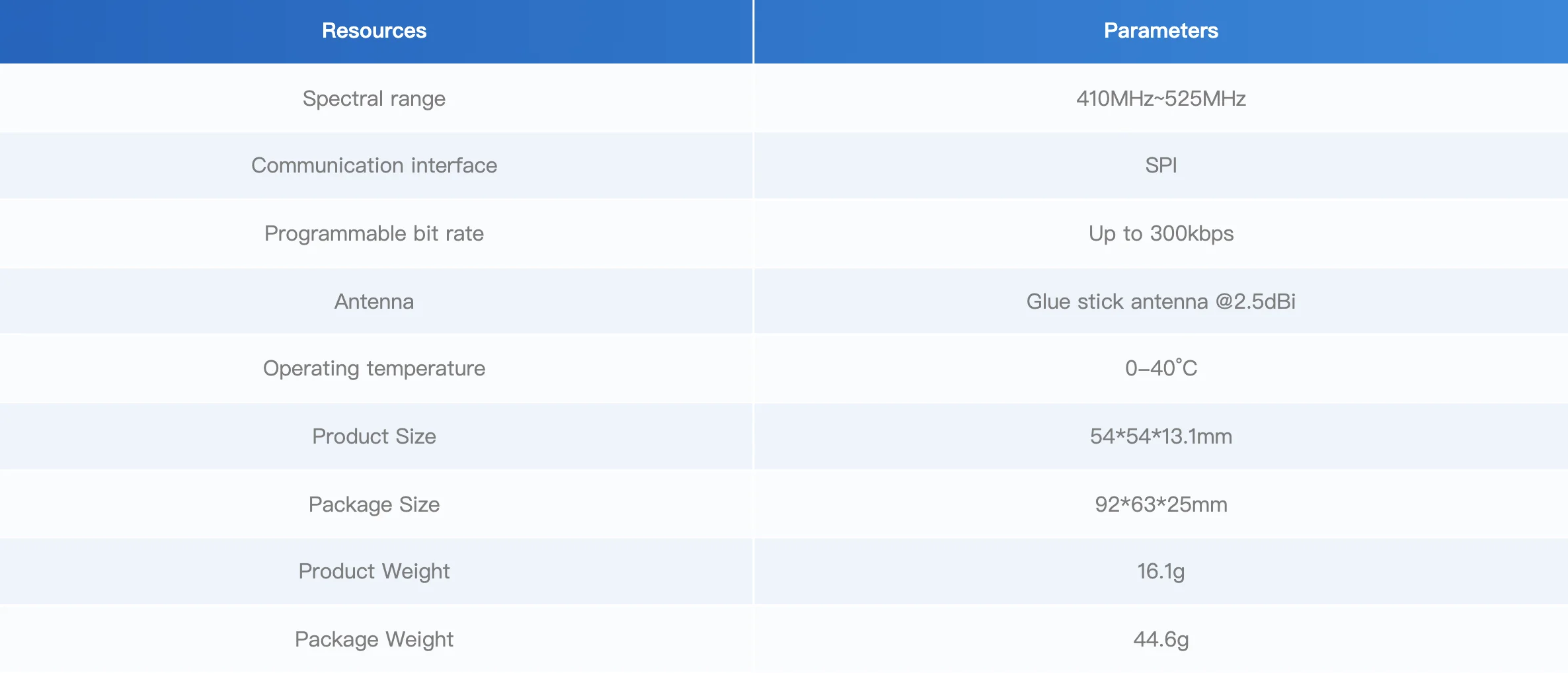* Supports FSK,GFSK,MSK,GMSK,LoRa™ and OOK modulation modes