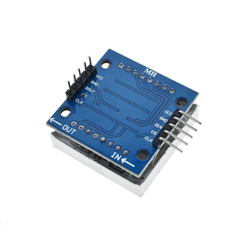 Descargo de responsabilidad:Un solo módulo puede conducir un cátodo común de matriz de puntos 8*8 2 El módulo Voltaje de funcionamiento: 5 V Dimensiones del módulo 3: largo 3,2 cm X 3,2 cm de ancho X 1,3 cm de alto 4 agujeros con cuatro tornillos, diámetro de 3mm Cinco módulos con interfaces de entrada y salida, soporte para múltiples módulos en cascada Instrucciones de Cableado: 1 En el bloque izquierdo a un puerto de entrada, el puerto de salida a la derecha. 2 Cuando el control de un solo módulo, simplemente ingrese el puerto recibió una CPU La CPU de terminación de entrada de salida en cascada de 3 módulos, el módulo de terminación de salida de entrada de los dos primeros módulos del primero, los dos primeros módulos del terminal de entrada de terminación de los tres módulos, Y así. El único ejemplo de To 51: VCC 5 V GND DIN P2.2 CS P2.1 CLK P2.0