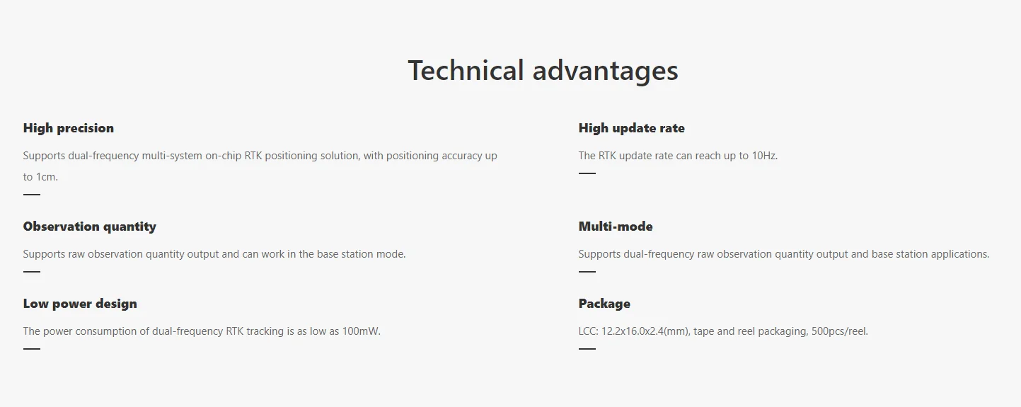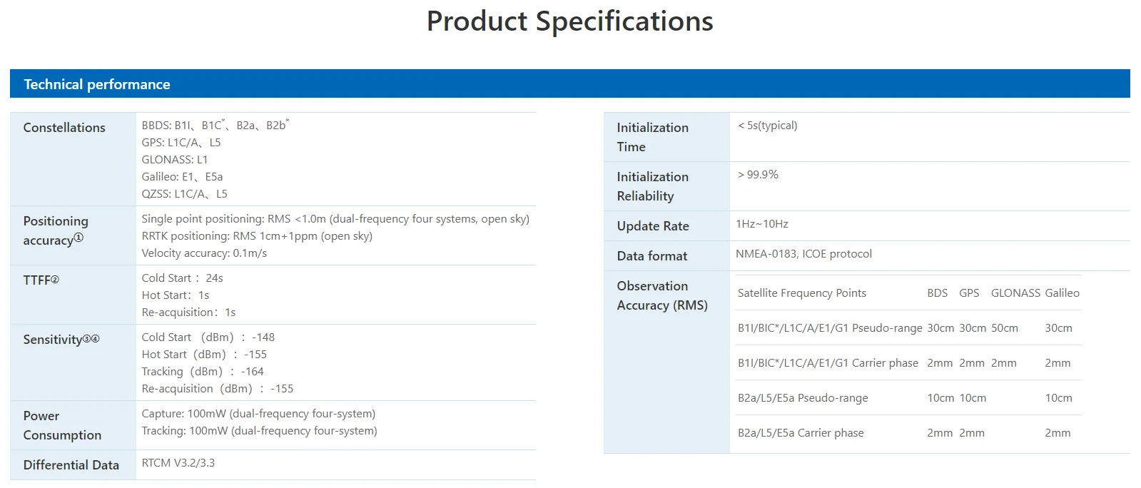 UM626N es un módulo de posicionamiento RTK de nivel centimétrico multisistema de doble frecuencia mejorado desarrollado por ICOE. El módulo se basa en la banda base RF de próxima generación ICOE y el chip GNSS integrado con algoritmo de alta precisión, CPU incorporada de alto rendimiento e integrado con un procesador de punto flotante de doble precisión y un coprocesador dedicado RTK. Adopta un proceso avanzado de bajo consumo de energía y puede lograr una salida de resultado de posicionamiento RTK de 10 Hz, proporcionando resultados de posicionamiento de alta precisión a nivel de centímetros. Puede admitir simultáneamente dos modos de trabajo de estación base y estación móvil. El módulo admite interfaces de comunicación como UART, SPI e I2C, que pueden usarse ampliamente en el campo de aplicaciones de alta precisión para bienes de consumo.