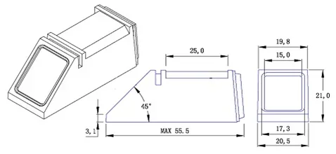 Diagrama dimensional del módulo óptico de huellas dactilares integrado R308: