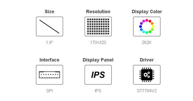 Comprar Módulo de pantalla IPS LCD de 1,9 pulgadas, interfaz SPI, pantalla a colores de 262K, resolución de 170x320 para Arduino/STM32/Raspberry Pi