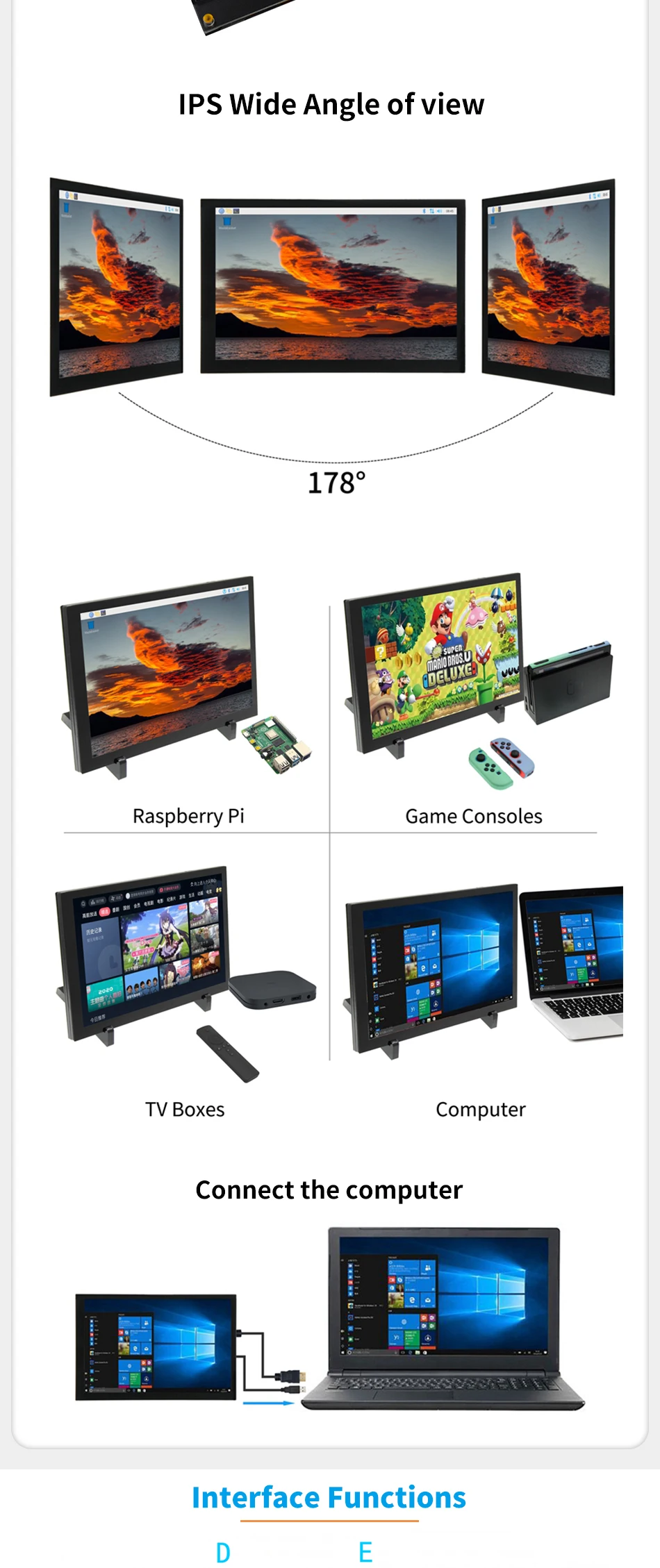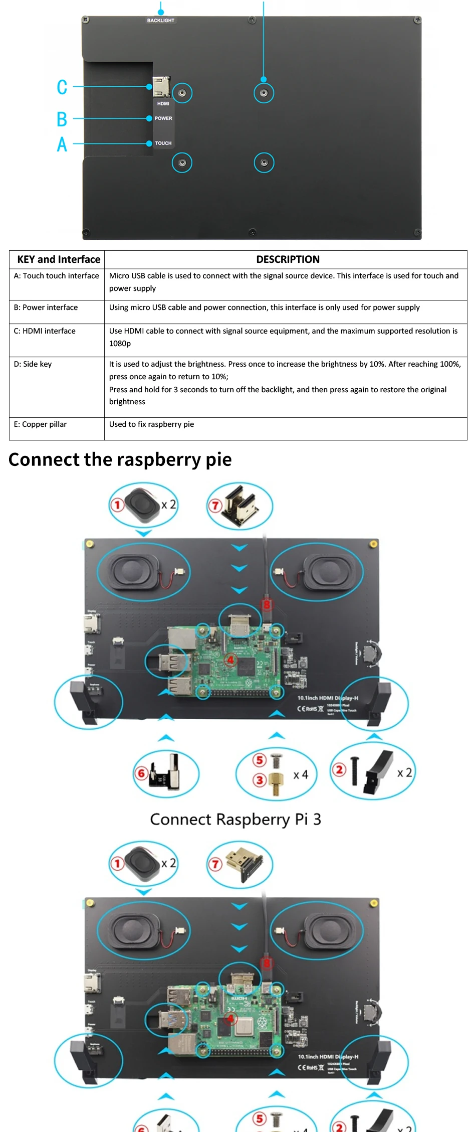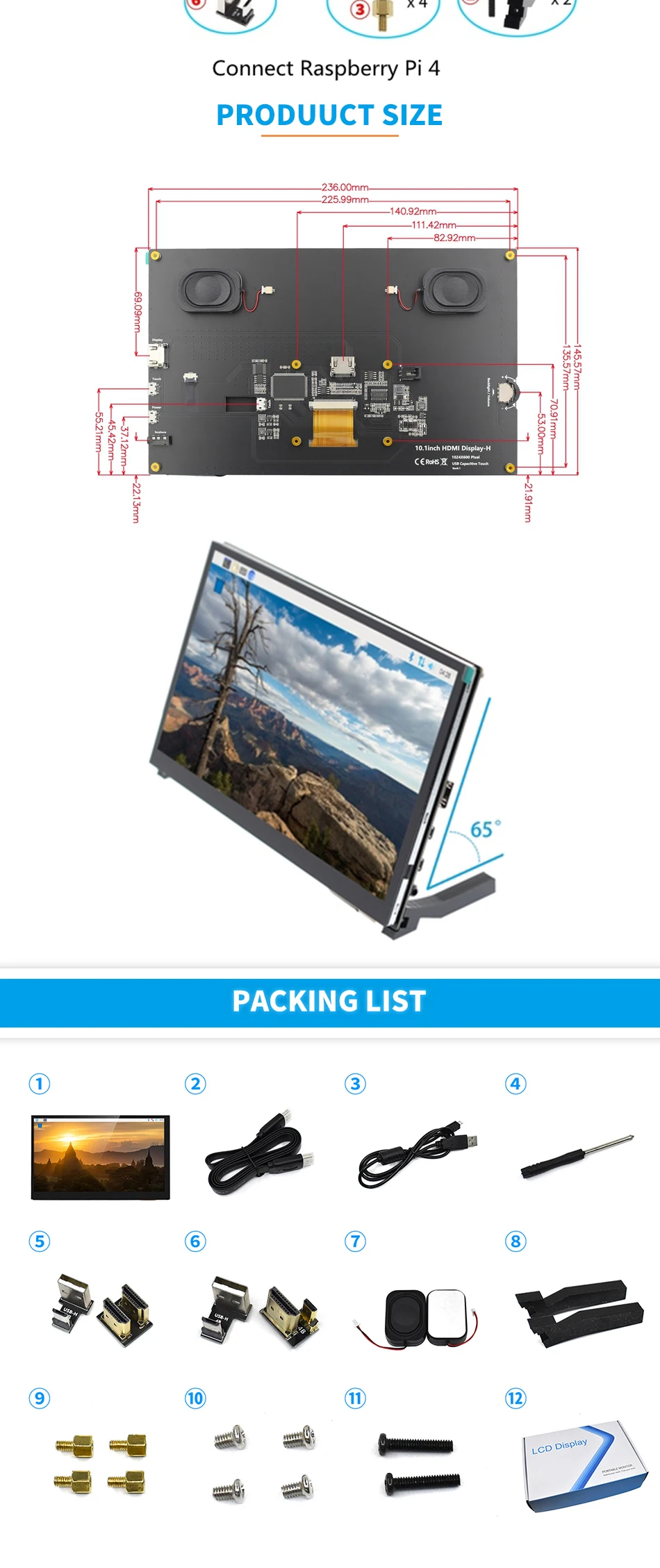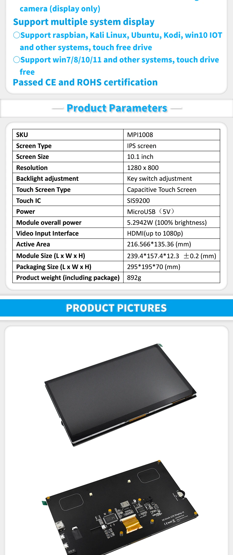 Comprar Módulo de pantalla LCD para RaspBerry Pi, pantalla de Monitor de 10,1 pulgadas, 1024x600, HDMI, IPS, TFT, USB, Panel táctil capacitivo de Audio