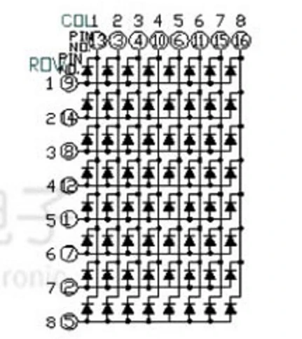 1.9MM Dot Matrix3.0MM Dot Matrix3.75MM Dot Matrix5.0MM Dot MatrixAll models above do not come with boardsThe MAX7219 is an integrated serial input / output common cathode display driver. It is connected to a microprocessor and an 8-digit 7-segment digital LED display. It can also be connected to a bar graph display or 64 independent LEDs. It includes an on-chip B-type BCD encoder, multi-channel scanning loop, segment word driver, and an 8x8 static RAM for storing each data. only an external register is used to set the segment current of each LED. A convenient four-wire serial interface can be connected to all general-purpose microprocessors. Each data can be addressed without updating all displays during update. MAX721 9 also allows users to choose whether to encode or not to encode each data.The entire device includes a 150uA low-power shutdown mode, analog and digital brightness control, a scan limit register that allows users to display 1-8 bits of data, and a detection mode that allows all LEDs to emit light.Only 3 IO ports are needed to drive 1 dot matrix! No flashing when dot matrix display! Support cascading!Product Parameters:1. A single module can drive an 8*8 common negative dot matrix2. Module working voltage: 5V3. Module size: 13cm*6.4cm*1.3cm4. With 32 fixing screw holes, hole diameter 3mm5. Module with input and output interface, support multiple modules cascadeWiring Instructions: