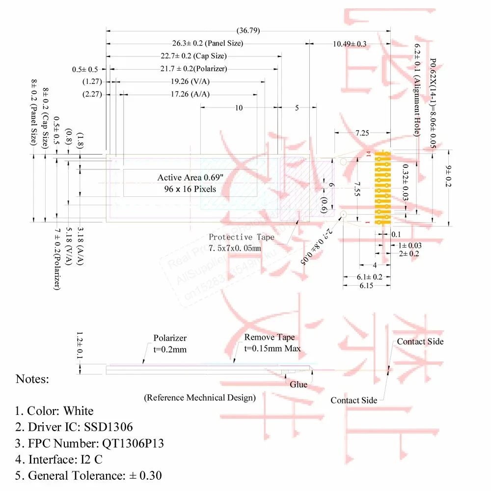 Módulo de pantalla OLED de 0,69 pulgadas Pantalla OLED 96*16 Luz blanca SSD1315 I2C Pantalla IIC para TS100 TS08 14PIN