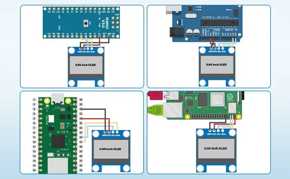 • Pantalla de alta resolución:Con una resolución de 128x64 SS, este módulo de pantalla OLED ofrece imágenes claras y vibrantes para sus proyectos Arduino ESP32 ESP8266.