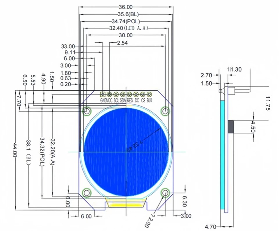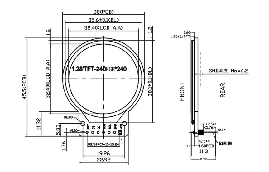 【Placa redonda del módulo TFT de pantalla redonda de 1,28 pulgadas】