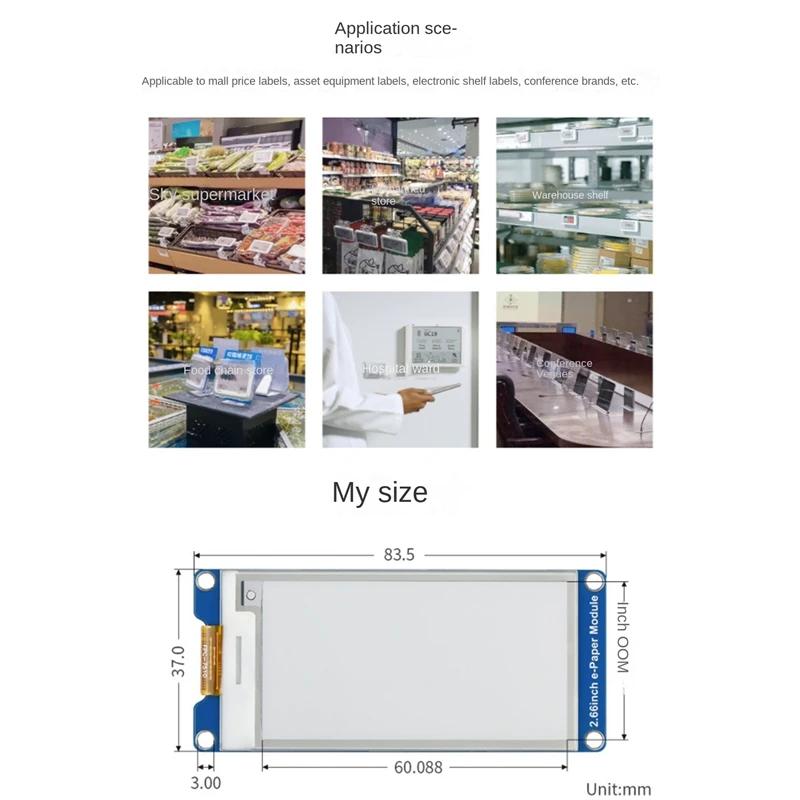 Comprar Módulo de pantalla de tinta electrónica de papel electrónico, pantalla de visualización de tinta electrónica de 2,66 pulgadas, adecuado para Raspberry Pi
