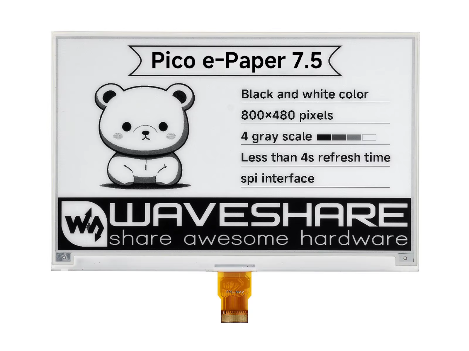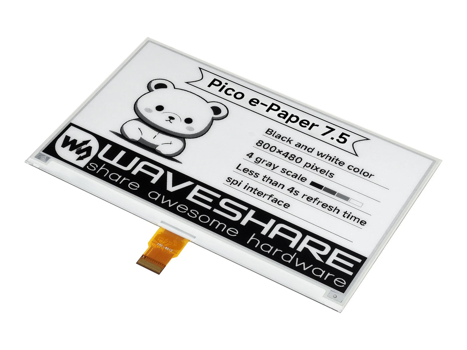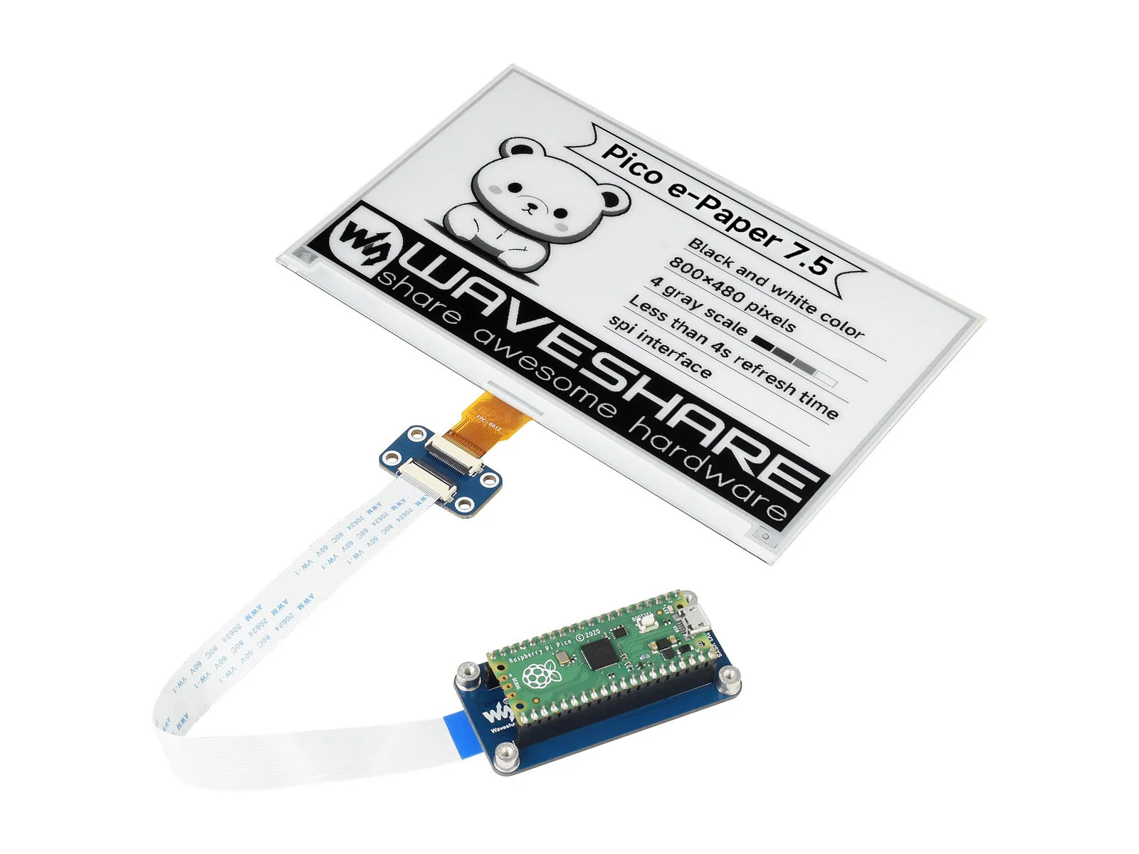Comprar Módulo de pantalla de tinta electrónica Waveshare de 7,5 pulgadas para Raspberry Pi Pico, 800 × 480 píxeles, negro/blanco, interfaz SPI