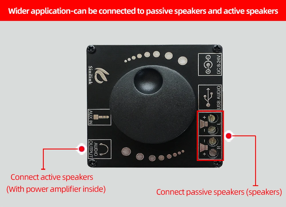 Nota: la potencia de salida de la fuente de alimentación debe ser mayor que la potencia de salida del amplificador, de lo contrario afectará la calidad del sonido