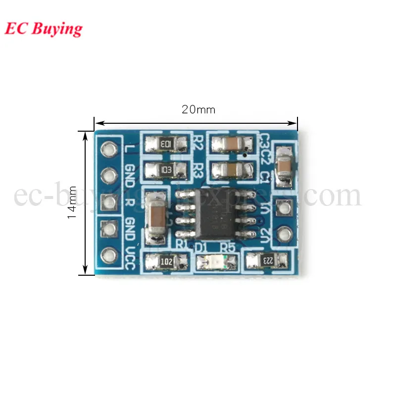 1.Dimensión: 1,85*2,15 cm2.Voltaje de trabajo: 2,5 V-5 V, voltaje límite: 5,5 V3.Excelente supresión de ruido4.Gran potencia de salida, buena calidad de sonido.5.Estéreo de doble canal, fuente de alimentación de 5 V y puede generar una potencia de 3 W + 3 W, y puede controlar directamente altavoces de 4 ohmios y 8 ohmios6.Placa de alimentación digital Clase D sin filtro LC, podría alimentarse mediante USB de computadora7.Cableado de panel dual, el cableado resuelve adecuadamente la diafonía causada por el equilibrio potencial de tierra y el canal intermedio.8.Diseño en miniatura, se puede colocar fácilmente en una variedad de productos digitales.Nota:La salida del canal izquierdo y derecho del "negativo" no se puede conectar en paralelo; de lo contrario, se quemará el IC y antes de la electrificación, primero debe conectar el altavoz (carga).