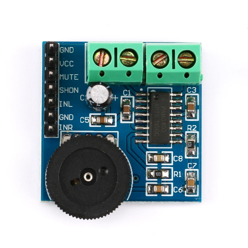 PAM8403Información del producto:PAM8403 es un pequeño chip amplificador digital, la calidad del sonido de alta definición resalta las ventajas de los chips digitales, el circuito utiliza la configuración periférica más razonable, el filtrado de la fuente de alimentación se actualiza a 470 uf (algunos vendedores no tienen menos ni siquiera una capacitancia de 100 uf) 1.Hoja de vidrio de 6 mm, la placa amplificadora real hizo la salida de sonido más detallada y de alta fidelidad de 3 W + 3 W, es un amplificador poco común para entusiastas de los productos, potenciómetro que utiliza el cuerpo anti-metro original, esperanza de vida de hasta 15 años, potenciómetro con interruptor puede Corte la fuente de alimentación directamente en sentido antihorario. ¡El comprador ha recibido el listado!Característica:Rango de potencia: CC 2,5 V – 5,5 VSalida mínima: 3W * 2Dimensiones: 29,5 * 20,2 * 15 mmNota:asegúrese de que la fuente de alimentación no supere los 5,5 V y no invierta la polaridad para "+" y "-", de lo contrario, quemará la placa.